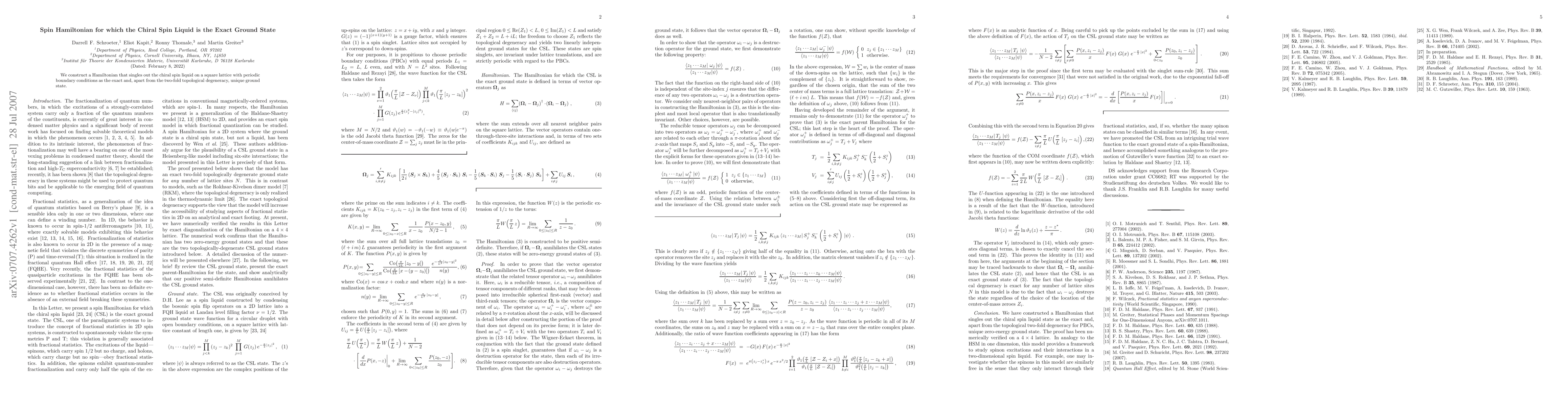 Summary: The paper constructs a Spin Hamiltonian on a square lattice that uniquely determines the chiral spin liquid as the exact ground state, with only a two-fold topological degeneracy. This model highlights the unique properties of chiral spin liquids.