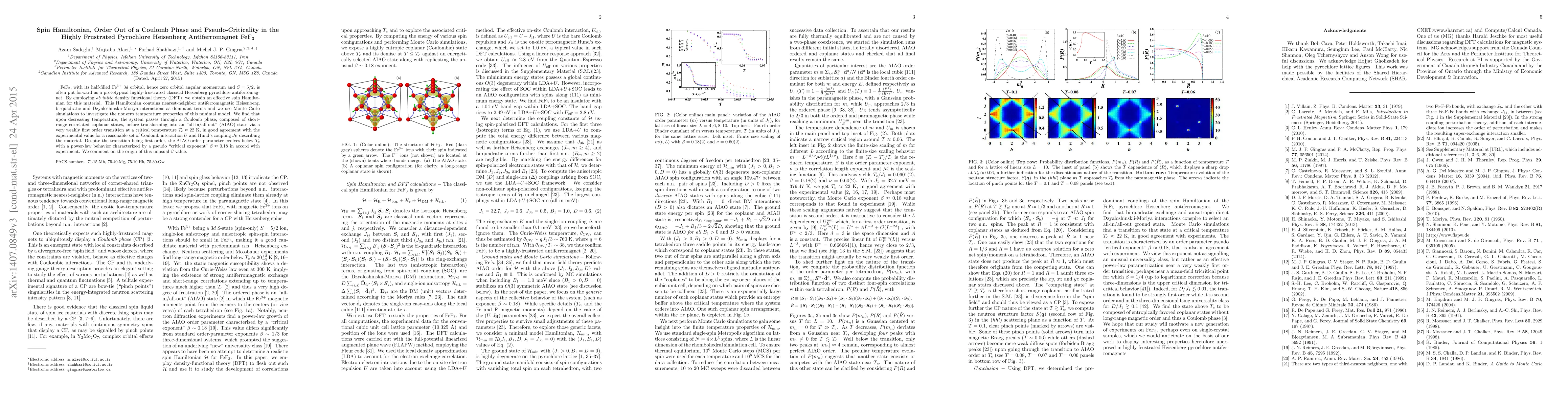 FeF$_3$, with its half-filled Fe$^{3+}$ $3d$ orbital, hence zero orbital angular momentum and $S=5/2$, is often put forward as a prototypical highly-frustrated classical Heisenberg pyrochlore antiferromagnet. By employing {\it ab initio} density functional theory (DFT), we obtain an effective spin Hamiltonian for this material. This Hamiltonian contains nearest-neighbor antiferromagnetic Heisenberg, bi-quadratic and Dzyaloshinskii-Moriya interactions as dominant terms and we use Monte Carlo simulations to investigate the nonzero temperature properties of this minimal model. We find that upon decreasing temperature, the system passes through a Coulomb phase, composed of short-range correlated coplanar states, before transforming into an "all-in/all-out" (AIAO) state via a very weakly first order transition at a critical temperature $T_c\approx 22$ K, in good agreement with the experimental value for a reasonable set of Coulomb interaction $U$ and Hund's coupling $J_{\rm H}$ describing the material. Despite the transition being first order, the AIAO order parameter evolves below $T_c$ with a power-law behavior characterized by a pseudo "critical exponent" $\beta \approx 0.18$ in accord with experiment. We comment on the origin of this unusual $\beta$ value.