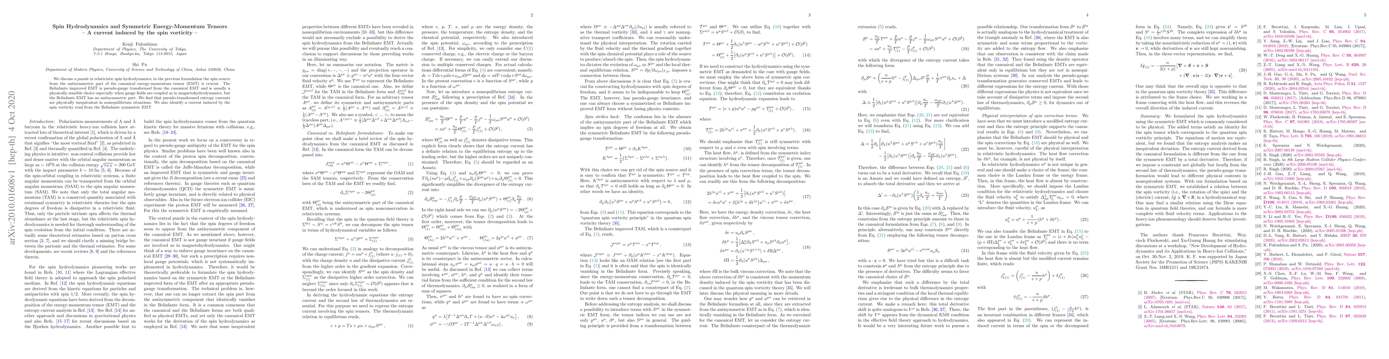 Researchers investigate a puzzle in relativistic spin hydrodynamics, finding a current induced by spin vorticity from the Belinfante symmetric energy-momentum tensor, which is physically inequivalent to other entropy currents in nonequilibrium situations.