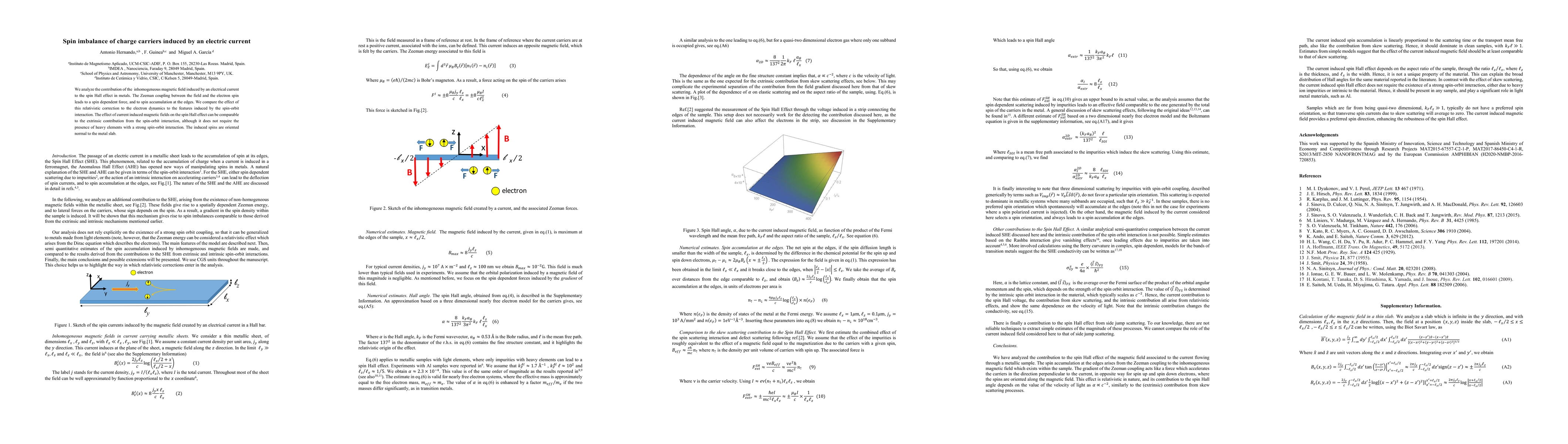 We analyze the contribution of the inhomogeneous magnetic field induced by an electrical current to the spin Hall effect in metals. The Zeeman coupling between the field and the electron spin leads to a spin dependent force, and to spin accumulation at the edges. We compare the effect of this relativistic correction to the electron dynamics to the features induced by the spin-orbit interaction. The effect of current induced magnetic fields on the spin Hall effect can be comparable to the extrinsic contribution from the spin-orbit interaction, although it does not require the presence of heavy elements with a strong spin-orbit interaction. The induced spins are oriented normal to the metal slab.