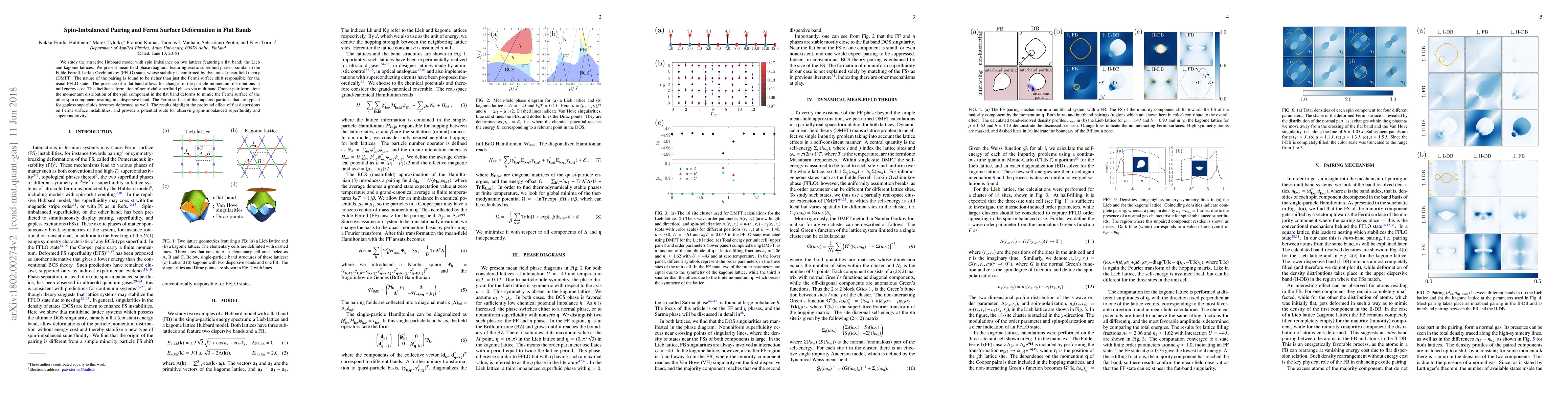This paper investigates spin-imbalanced pairing in the attractive Hubbard model on Lieb and kagome lattices, revealing exotic superfluid phases akin to the FFLO state facilitated by flat bands. The study highlights how flat bands enable nontrivial superfluid phases through multiband Cooper pair formation and Fermi surface deformation, offering a pathway to observe spin-imbalanced superconductivity.
