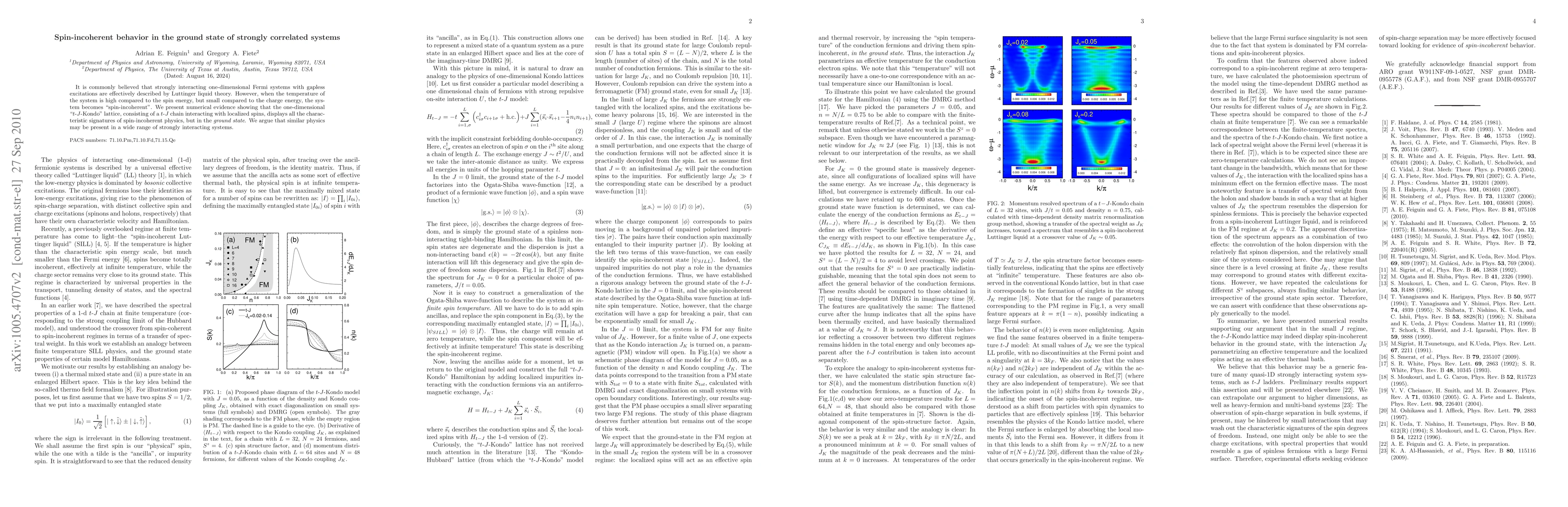 It is commonly believed that strongly interacting one-dimensional Fermi systems with gapless excitations are effectively described by Luttinger liquid theory. However, when the temperature of the system is high compared to the spin energy, but small compared to the charge energy, the system becomes "spin-incoherent". We present numerical evidence showing that the one-dimensional "t-J-Kondo" lattice, consisting of a t-J chain interacting with localized spins, displays all the characteristic signatures of spin-incoherent physics, but in the {\it ground state}. We argue that similar physics may be present in a wide range of strongly interacting systems.