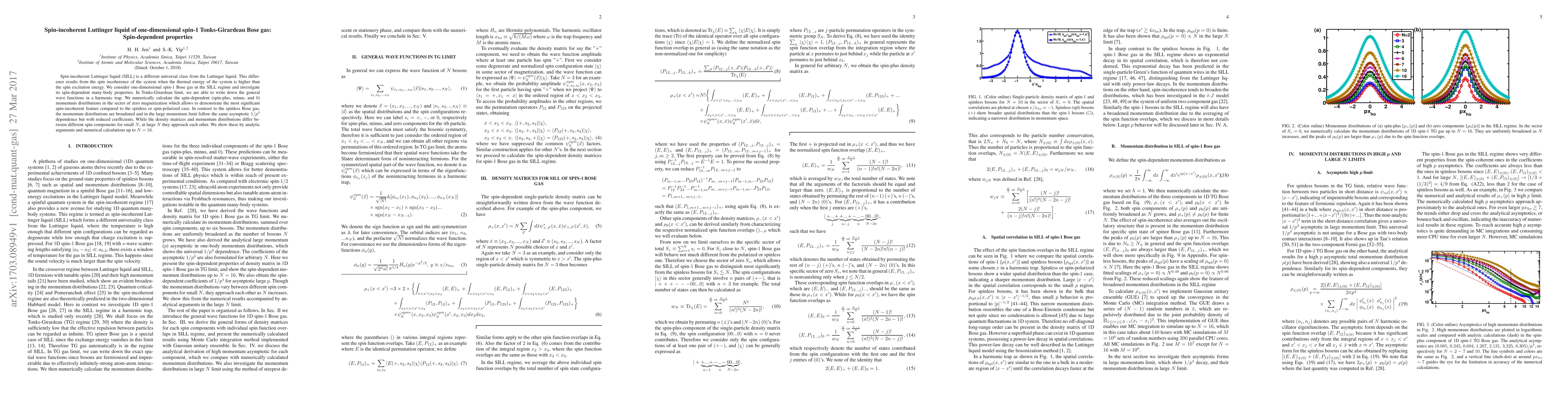 Spin-incoherent Luttinger liquid (SILL) is a different universal class from the Luttinger liquid.\ This difference results from the spin incoherence of the system when the thermal energy of the system is higher than the spin excitation energy.\ We consider one-dimensional spin-$1$ Bose gas in the SILL regime and investigate its spin-dependent many-body properties.\ In Tonks-Girardeau limit, we are able to write down the general wave functions in a harmonic trap.\ We numerically calculate the spin-dependent (spin-plus, minus, and $0$) momentum distributions in the sector of zero magnetization which allows to demonstrate the most significant spin-incoherent feature compared to the spinless or spin-polarized case.\ In contrast to the spinless Bose gas, the momentum distributions are broadened and in the large momentum limit follow the same asymptotic $1/p^4$ dependence but with reduced coefficients.\ While the density matrices and momentum distributions differ between different spin components for small $N$, at large $N$ they approach each other.\ We show these by analytic arguments and numerical calculations up to $N$ $=$ $16$.