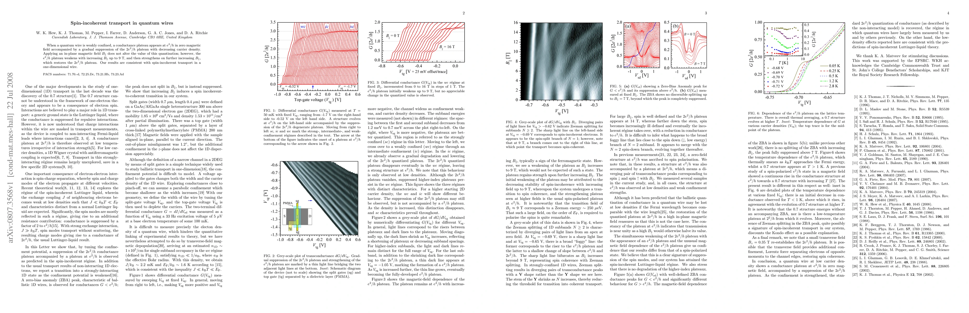 This study reveals spin-incoherent transport in weakly confined quantum wires, showing conductance plateaus at e^2/h and 2e^2/h. An in-plane magnetic field modifies the e^2/h plateau, indicating a transition that restores the 2e^2/h plateau at higher fields.