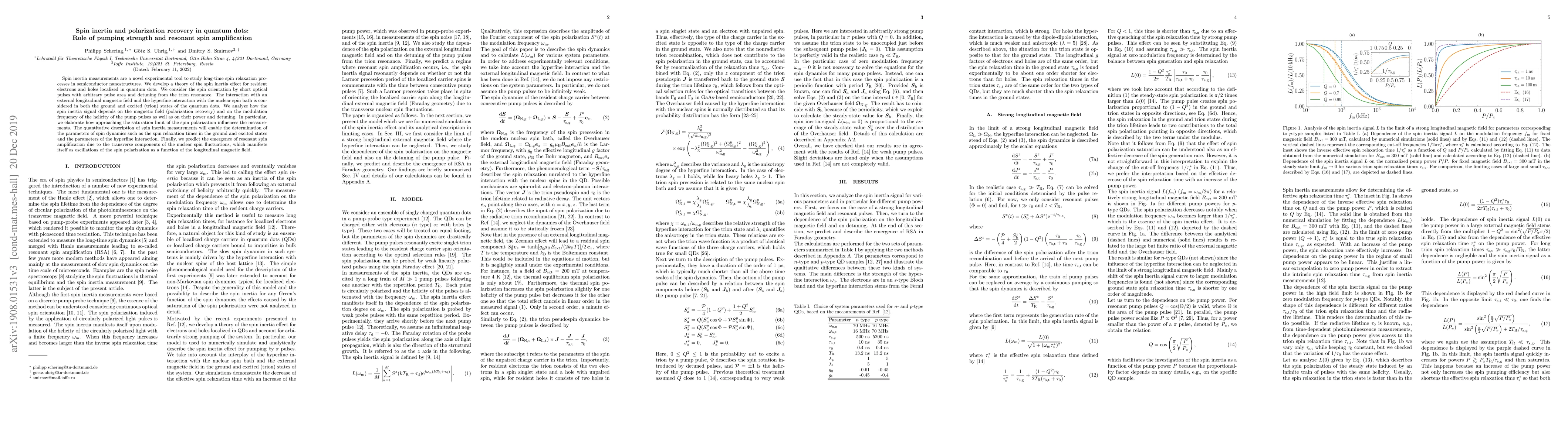 This paper develops a theoretical framework for understanding spin inertia in quantum dots, focusing on how spin polarization recovery is influenced by the strength and characteristics of optical pump pulses. It also predicts resonant spin amplification effects due to nuclear spin fluctuations under specific magnetic field conditions.