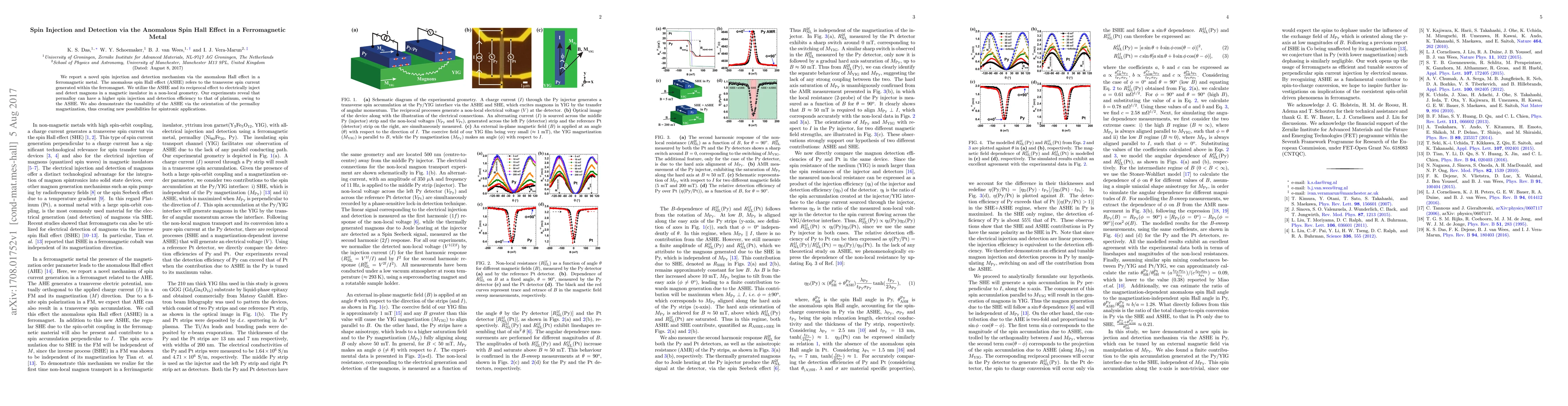 This paper introduces a novel method for spin injection and detection using the anomalous spin Hall effect (ASHE) in ferromagnetic metals, specifically permalloy, which shows higher efficiency than platinum. The study demonstrates the tunability of ASHE by magnetization orientation, opening new avenues for spintronic applications.