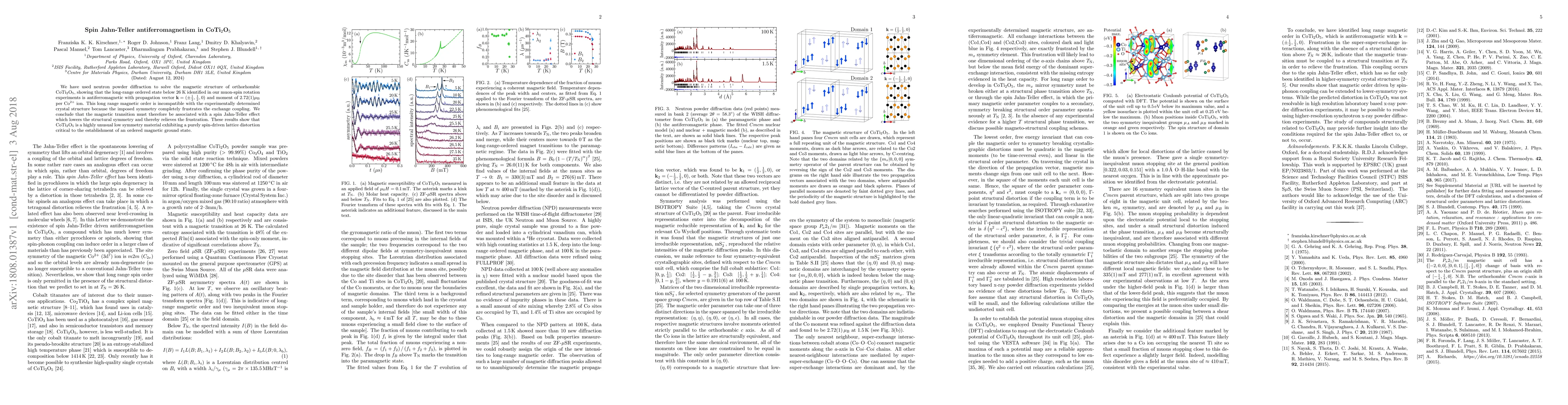We have used neutron powder diffraction to solve the magnetic structure of orthorhombic CoTi$_2$O$_5$, showing that the long-range ordered state below 26 K identified in our muon-spin rotation experiments is antiferromagnetic with propagation vector ${\bf k}=(\pm \frac{1}{2}, \frac{1}{2}, 0)$ and moment of 2.72(1)$\mu_{\rm B}$ per Co$^{2+}$ ion. This long range magnetic order is incompatible with the experimentally determined crystal structure because the imposed symmetry completely frustrates the exchange coupling. We conclude that the magnetic transition must therefore be associated with a spin Jahn-Teller effect which lowers the structural symmetry and thereby relieves the frustration. These results show that CoTi$_2$O$_5$ is a highly unusual low symmetry material exhibiting a purely spin-driven lattice distortion critical to the establishment of an ordered magnetic ground state.