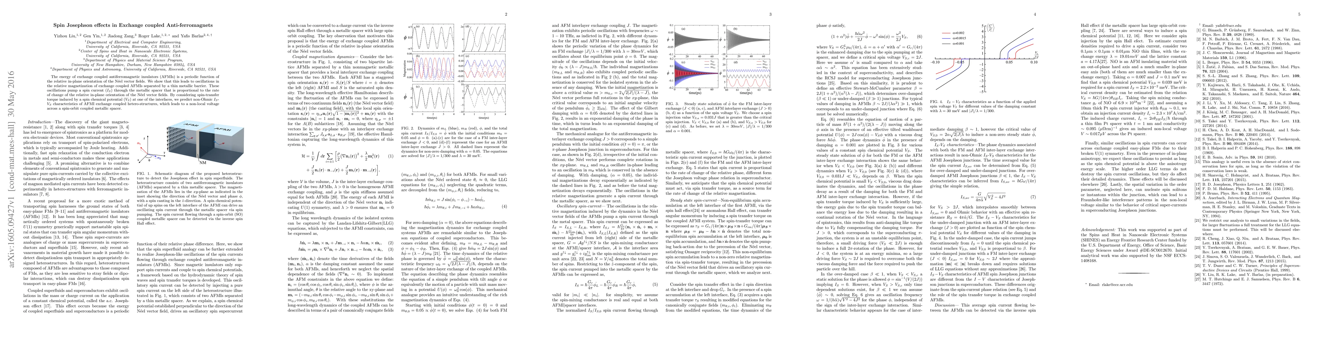 The energy of exchange coupled antiferromagnetic insulators (AFMIs) is a periodic function of the relative in-plane orientation of the N\'{e}el vector fields. We show that this leads to oscillations in the relative magnetization of exchange coupled AFMIs separated by a thin metallic barrier. These oscillations pump a spin current ($I_{S}$) through the metallic spacer that is proportional to the rate of change of the relative in-plane orientation of the N\'{e}el vector fields. By considering spin-transfer torque induced by a spin chemical potential ($V_{S}$) at one of the interfaces, we predict non-Ohmic $I_{S}$-$V_{S}$ characteristics of AFMI exchange coupled hetero-structures, which leads to a non-local voltage across a spin-orbit coupled metallic spacer.