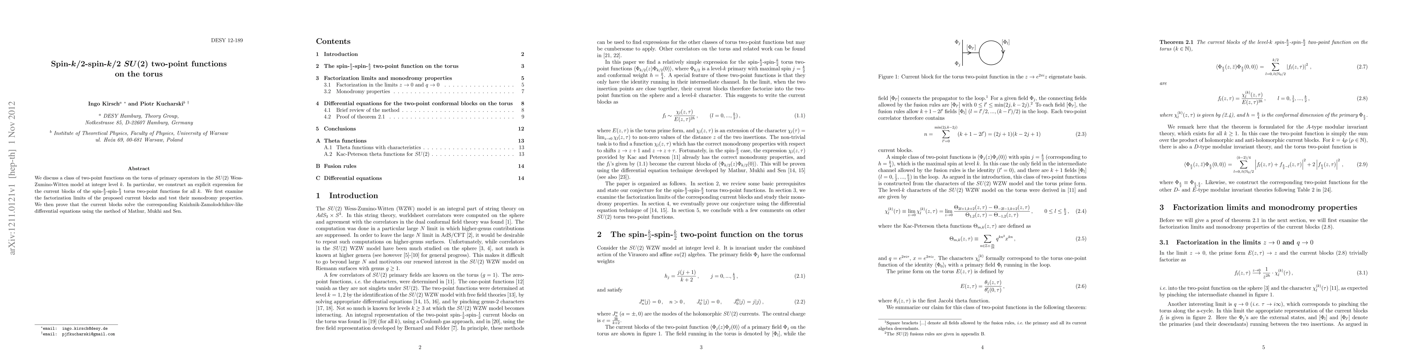 We discuss a class of two-point functions on the torus of primary operators in the SU(2) Wess-Zumino-Witten model at integer level k. In particular, we construct an explicit expression for the current blocks of the spin-k/2-spin-k/2 torus two-point functions for all k. We first examine the factorization limits of the proposed current blocks and test their monodromy properties. We then prove that the current blocks solve the corresponding Knizhnik-Zamolodchikov-like differential equations using the method of Mathur, Mukhi and Sen.