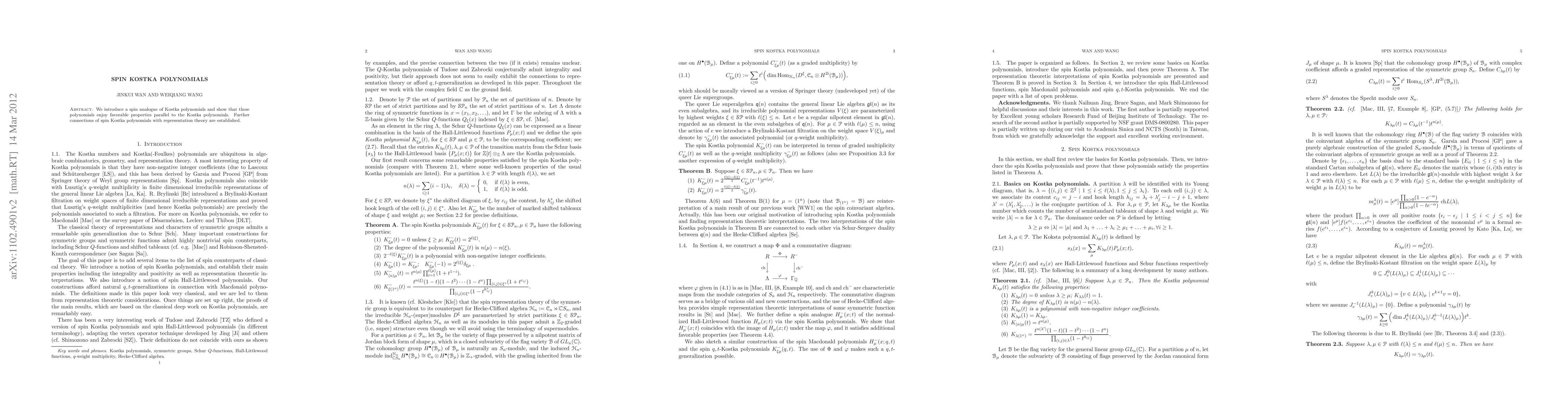 The research introduces spin Kostka polynomials, a spin analogue of Kostka polynomials, and establishes their favorable properties, paralleling those of Kostka polynomials. It also explores connections with representation theory.