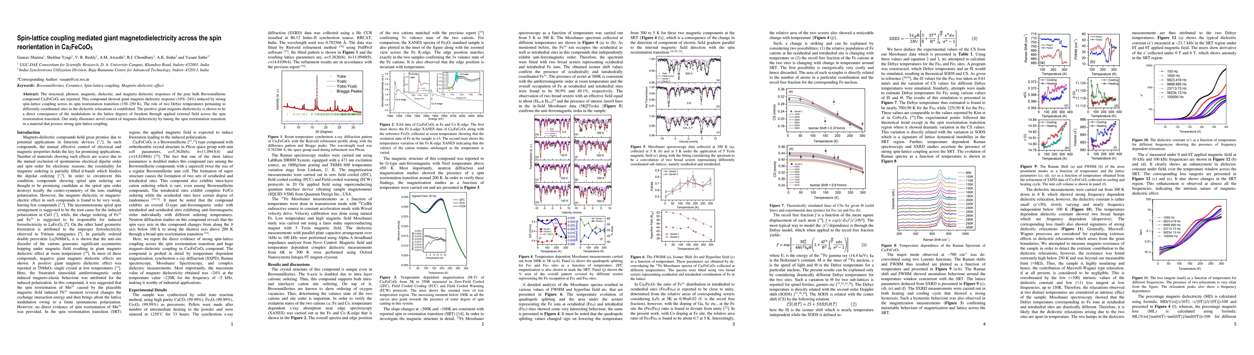 The structural, phonon, magnetic, dielectric, and magneto dielectric responses of the pure bulk Brownmillerite compound Ca2FeCoO5 are reported. This compound showed giant magneto dielectric response (10%-24%) induced by strong spin-lattice coupling across its spin reorientation transition (150-250 K). The role of two Debye temperatures pertaining to differently coordinated sites in the dielectric relaxations is established. The positive giant magneto-dielectricity is shown to be a direct consequence of the modulations in the lattice degrees of freedom through applied external field across the spin reorientation transition. Our study illustrates novel control of magneto-dielectricity by tuning the spin reorientation transition in a material that possess strong spin lattice coupling.