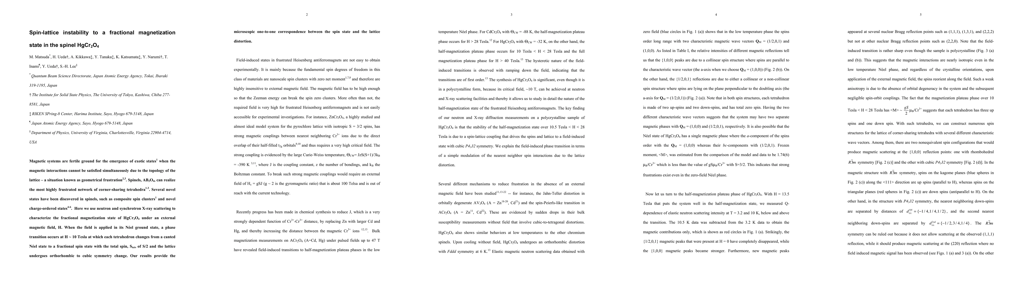 This study investigates the spin-lattice instability in the spinel HgCr2O4, revealing a phase transition under a magnetic field that induces a fractional magnetization state. Neutron and synchrotron X-ray scattering show a symmetry change from orthorhombic to cubic as each tetrahedron transitions to a fractional spin state.