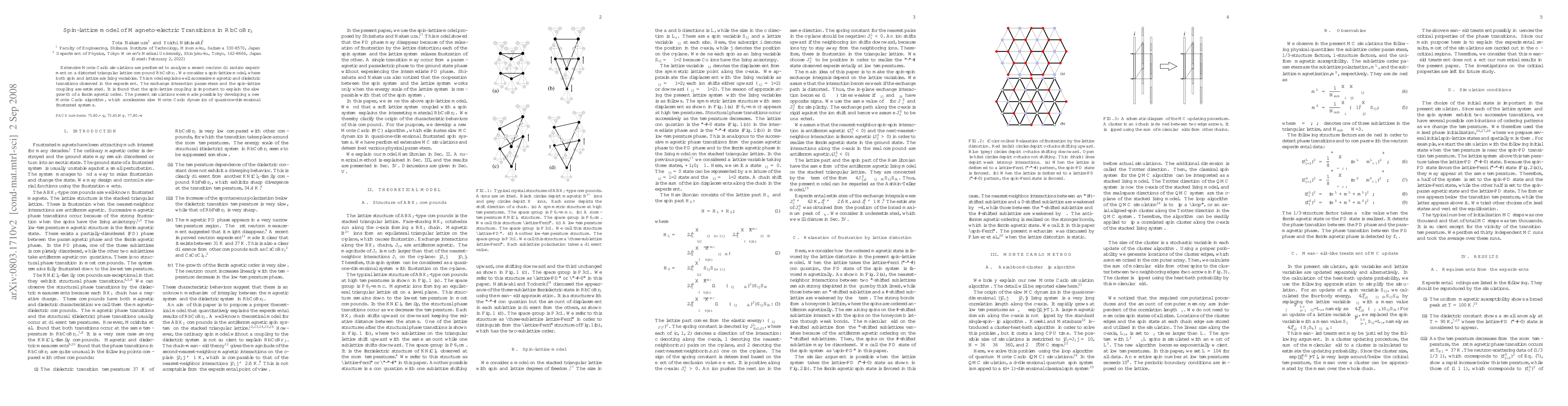 Extensive Monte Carlo simulations are performed to analyze a recent neutron diffraction experiment on a distorted triangular lattice compound RbCoBr$_3$. We consider a spin-lattice model, where both spin and lattice are Ising variables. This model explains well successive magnetic and dielectric transitions observed in the experiment. The exchange interaction parameters and the spin-lattice coupling are estimated. It is found that the spin-lattice coupling is important to explain the slow growth of a ferrimagnetic order. The present simulations were made possible by developing a new Monte Carlo algorithm, which accelerates slow Monte Carlo dynamics of quasi-one-dimensional frustrated systems.
