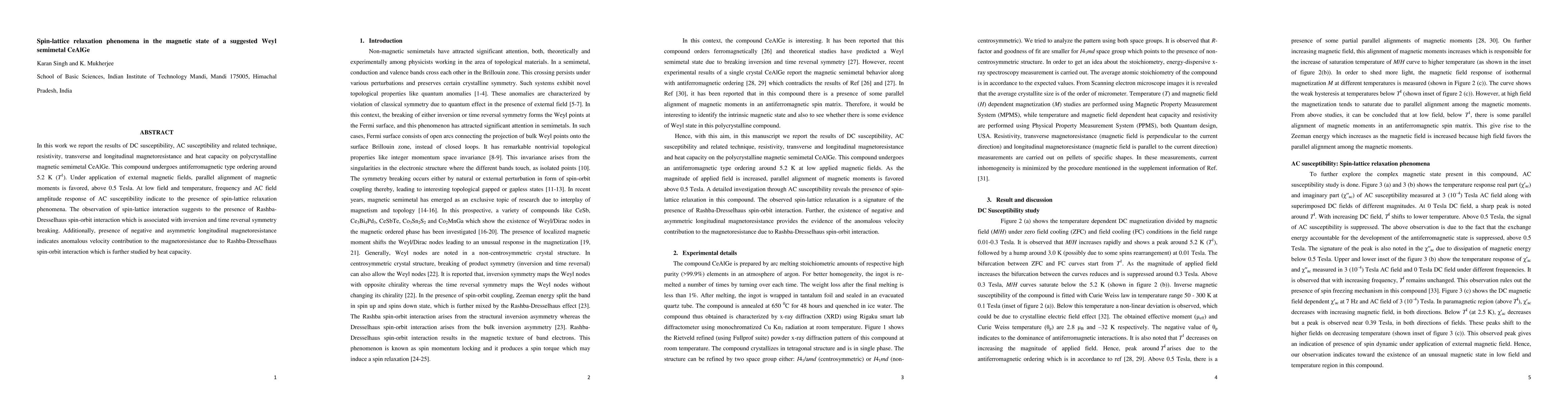 Researchers studied CeAlGe, a compound that exhibits Weyl semimetal properties, finding spin-lattice relaxation phenomena under external magnetic fields, indicating Rashba-Dresselhaus spin-orbit interaction.
