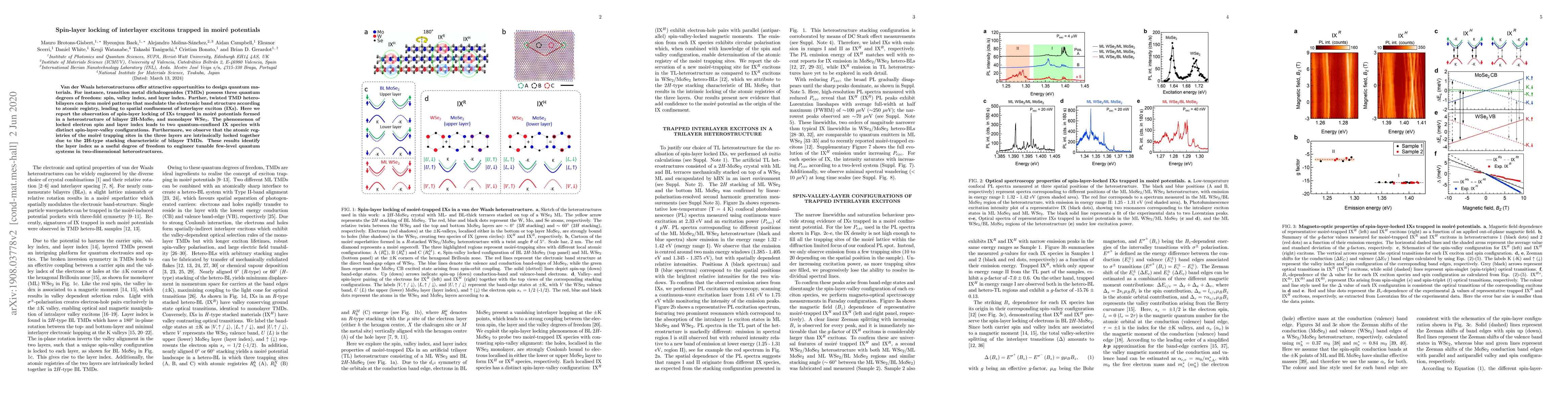 This paper reports the spin-layer locking of interlayer excitons trapped in moiré potentials in a heterostructure of bilayer 2H-MoSe$_2$ and monolayer WSe$_2$, revealing two distinct quantum-confined exciton species. The study highlights the intrinsic locking of atomic registries in the moiré trapping sites, suggesting the layer index as a valuable degree of freedom for engineering quantum systems.