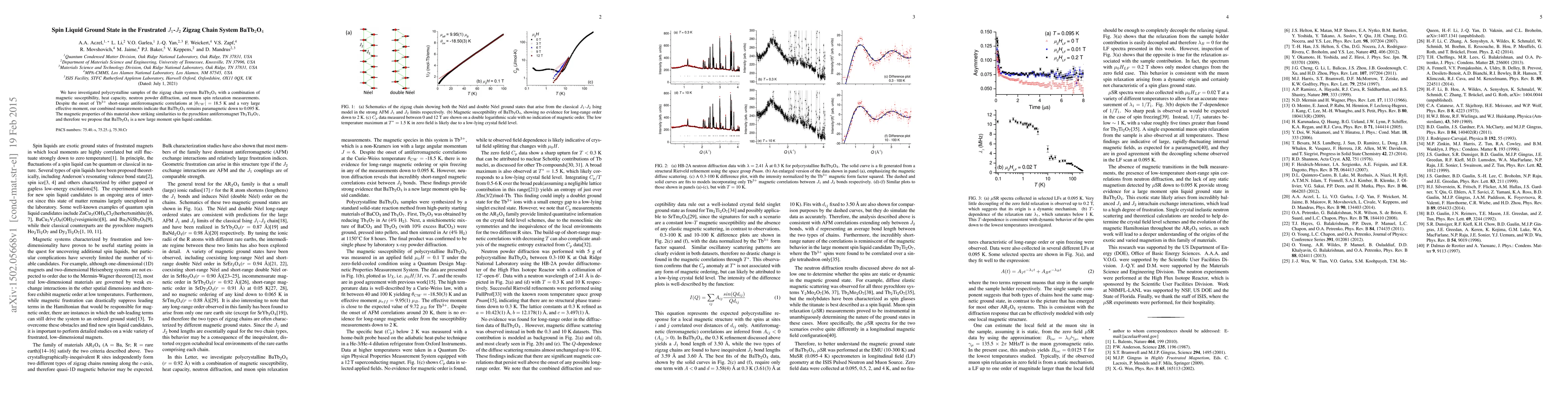 This study investigates BaTb$_2$O$_4$, a zigzag chain system, revealing paramagnetic behavior down to 0.095 K despite Tb$^{3+}$ short-range correlations, suggesting a spin liquid ground state akin to Tb$_2$Ti$_2$O$_7$. The findings propose BaTb$_2$O$_4$ as a new candidate for a large moment spin liquid.