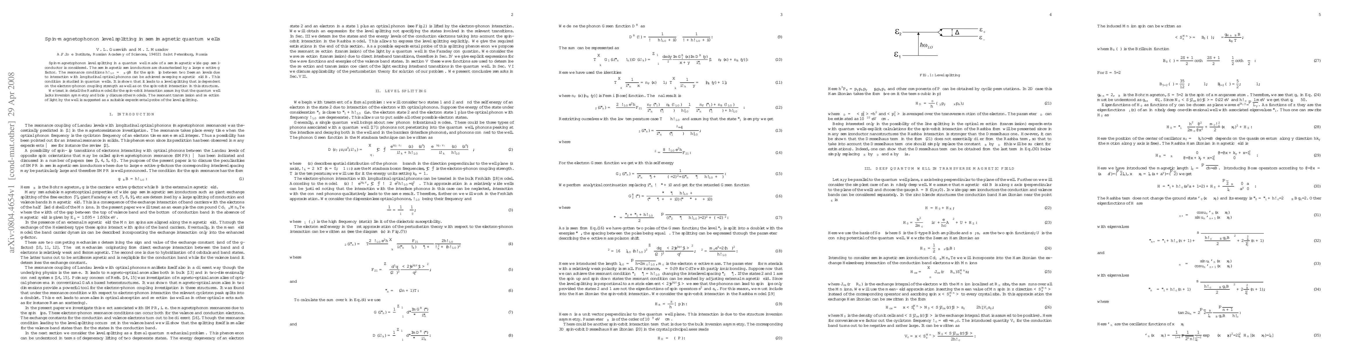 This paper investigates spin-magnetophonon level splitting in semimagnetic quantum wells, showing that it depends on electron-phonon coupling and spin-orbit interaction. It proposes resonant light transmission and reflection as a method to experimentally probe this effect.