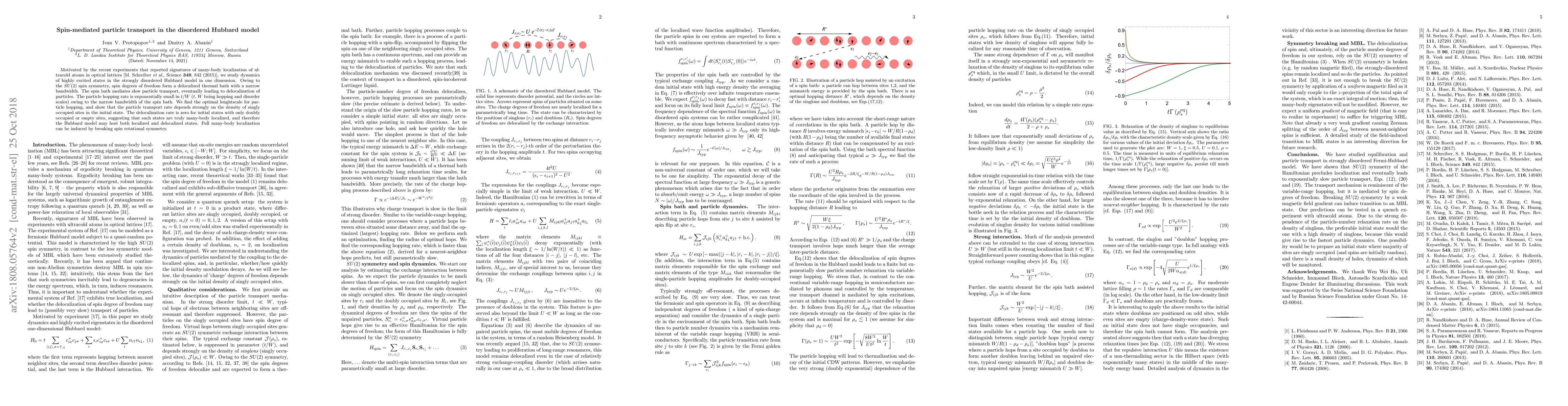 This research explores the dynamics of highly excited states in the disordered Hubbard model, finding that spin degrees of freedom create a thermal bath that mediates slow particle transport, leading to delocalization. The particle hopping rate is exponentially small due to the narrow bandwidth of the spin bath, with transport rate depending strongly on the density of singly occupied sites in the initial state.