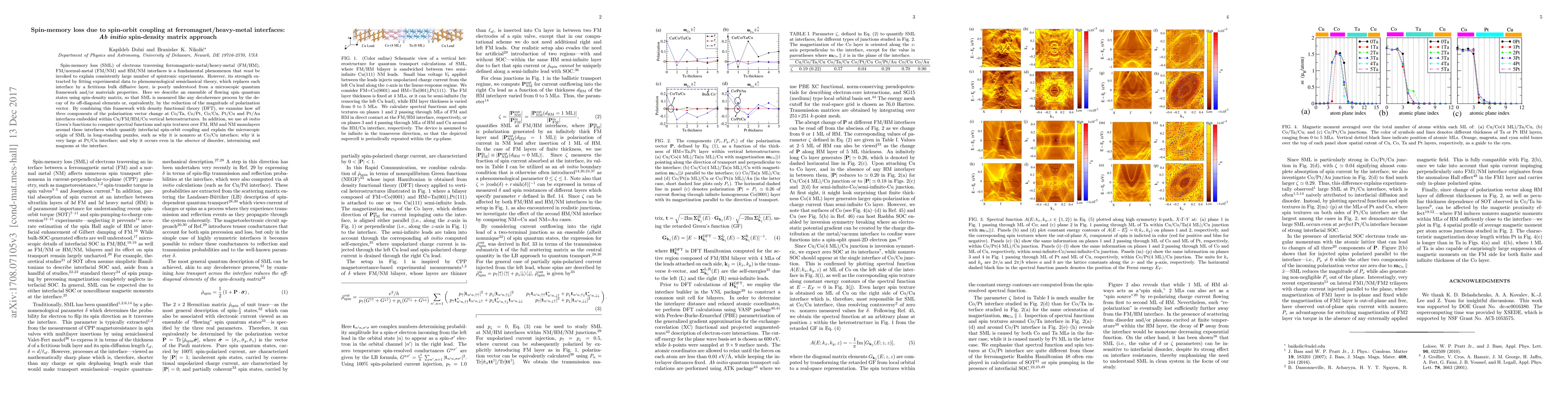 Spin-memory loss (SML) of electrons traversing ferromagnetic-metal/heavy-metal (FM/HM), FM/normal-metal (FM/NM) and HM/NM interfaces is a fundamental phenomenon that must be invoked to explain consistently large number of spintronic experiments. However, its strength extracted by fitting experimental data to phenomenological semiclassical theory, which replaces each interface by a fictitious bulk diffusive layer, is poorly understood from a microscopic quantum framework and/or materials properties. Here we describe an ensemble of flowing spin quantum states using spin-density matrix, so that SML is measured like any decoherence process by the decay of its off-diagonal elements or, equivalently, by the reduction of the magnitude of polarization vector. By combining this framework with density functional theory (DFT), we examine how all three components of the polarization vector change at Co/Ta, Co/Pt, Co/Cu, Pt/Cu and Pt/Au interfaces embedded within Cu/FM/HM/Cu vertical heterostructures. In addition, we use ab initio Green's functions to compute spectral functions and spin textures over FM, HM and NM monolayers around these interfaces which quantify interfacial spin-orbit coupling and explain the microscopic origin of SML in long-standing puzzles, such as why it is nonzero at Co/Cu interface; why it is very large at Pt/Cu interface; and why it occurs even in the absence of disorder, intermixing and magnons at the interface.