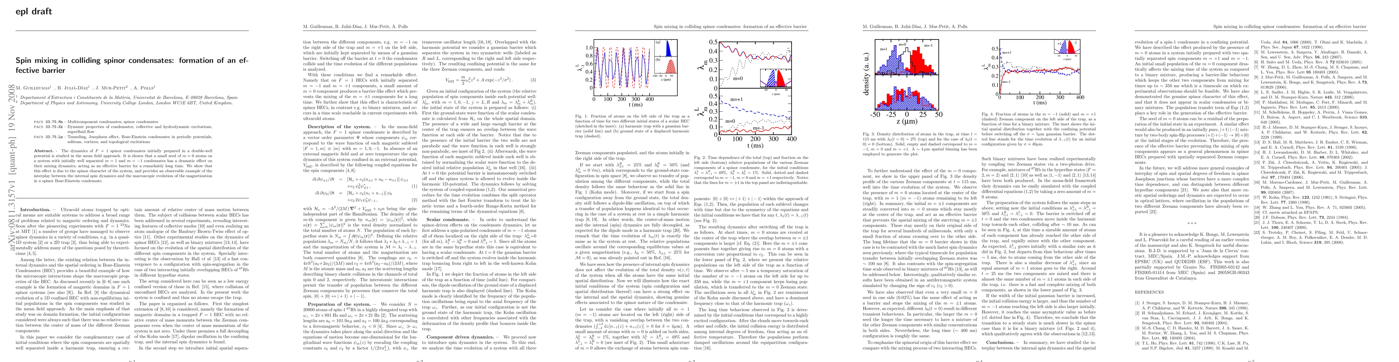 The dynamics of F=1 spinor condensates initially prepared in a double-well potential is studied in the mean field approach. It is shown that a small seed of $m=0$ atoms on a system with initially well separated m=1 and m=-1 condensates has a dramatic effect on their mixing dynamics, acting as an effective barrier for a remarkably long time. We show that this effect is due to the spinor character of the system, and provides an observable example of the interplay between the internal spin dynamics and the macroscopic evolution of the magnetization in a spinor Bose-Einstein condensate.