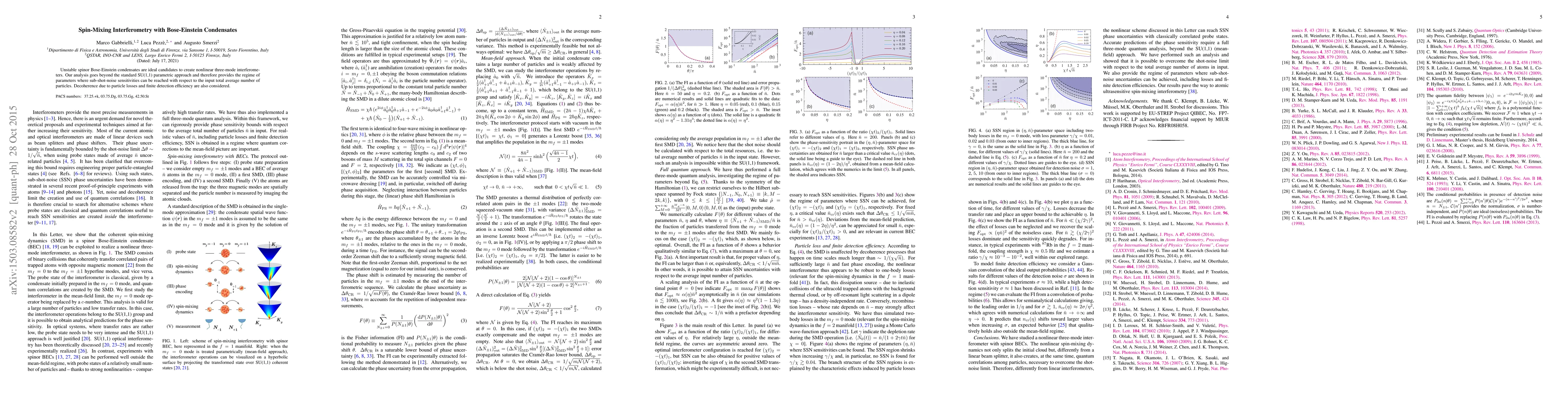 This paper explores the use of unstable spinor Bose-Einstein condensates to build nonlinear three-mode interferometers, extending beyond the standard SU(1,1) approach for enhanced sensitivity below shot-noise levels. It also addresses decoherence issues arising from particle losses and detection efficiency.