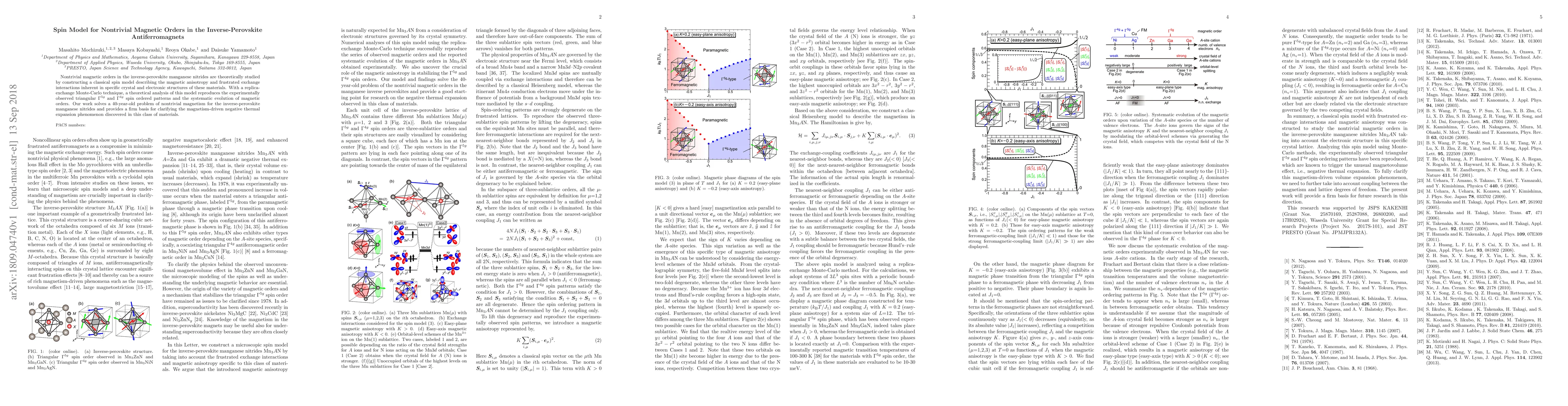 This paper constructs a classical spin model to explain the complex magnetic orders in inverse-perovskite manganese nitrides, using replica-exchange Monte-Carlo simulations. The model successfully reproduces observed spin patterns and addresses a longstanding issue in understanding their magnetism, offering insights into the magnetism-driven negative thermal expansion.