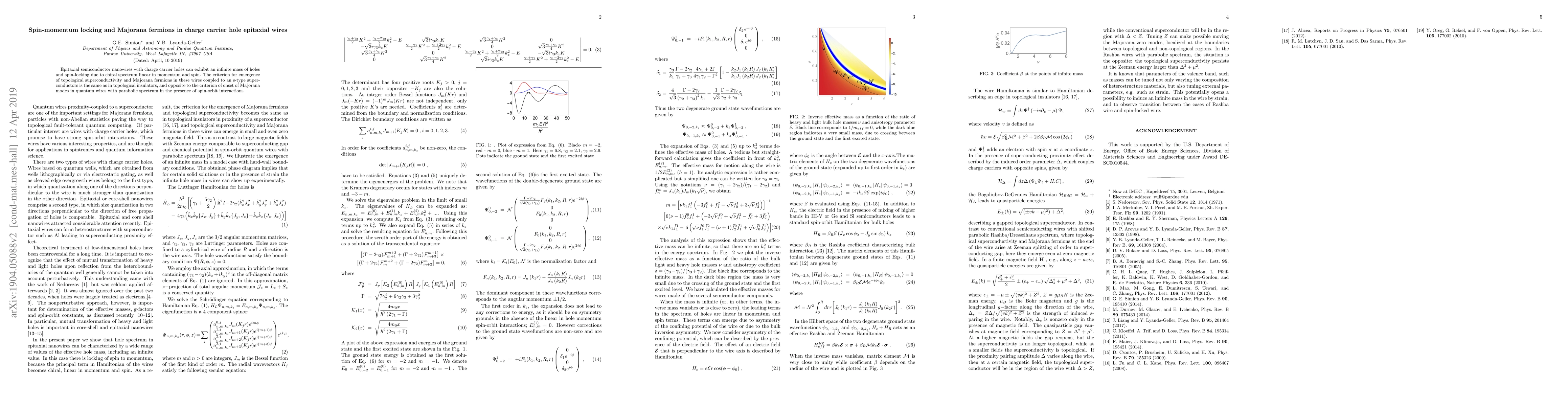 Epitaxial semiconductor nanowires with charge carrier holes can exhibit an infinite mass of holes and spin-locking due to chiral spectrum linear in momentum and spin. The criterion for emergence of topological superconductivity and Majorana fermions in these wires coupled to an s-type superconductors is the same as in topological insulators, and opposite to the criterion of onset of Majorana modes in quantum wires with parabolic spectrum in the presence of spin-orbit interactions.
