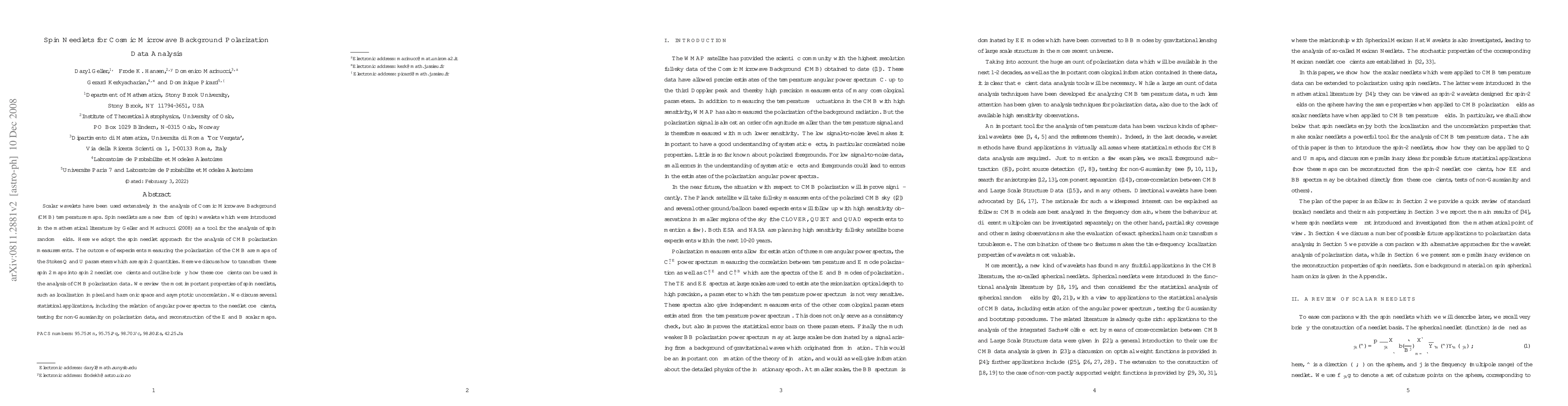This paper introduces spin needlets, a novel wavelet-based method for analyzing Cosmic Microwave Background (CMB) polarization data, transforming spin 2 maps into spin 2 needlet coefficients for improved statistical analysis, including power spectrum estimation and non-Gaussianity testing.