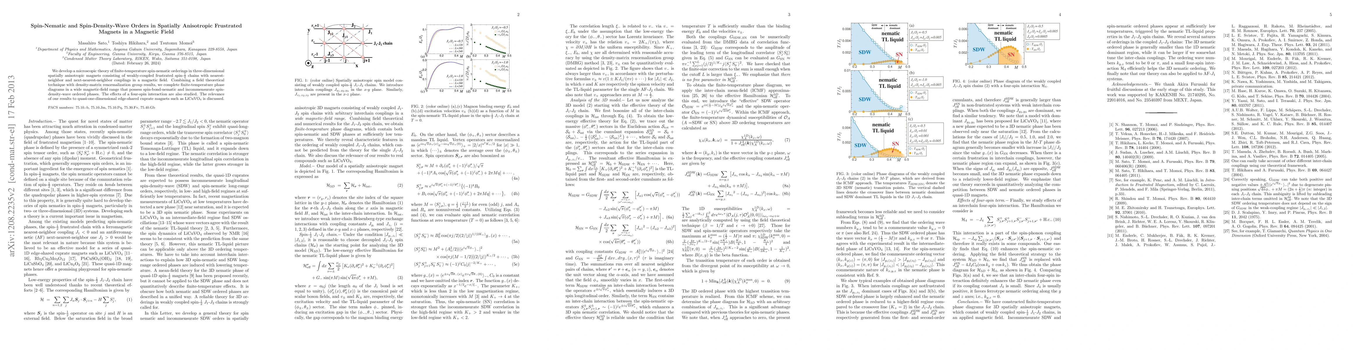 This paper develops a microscopic theory for spin-nematic and spin-density-wave orders in three-dimensional anisotropic frustrated magnets under a magnetic field, revealing spin-bond-nematic and incommensurate spin-density-wave phases, and discusses implications for quasi-one-dimensional cuprate magnets like LiCuVO4.