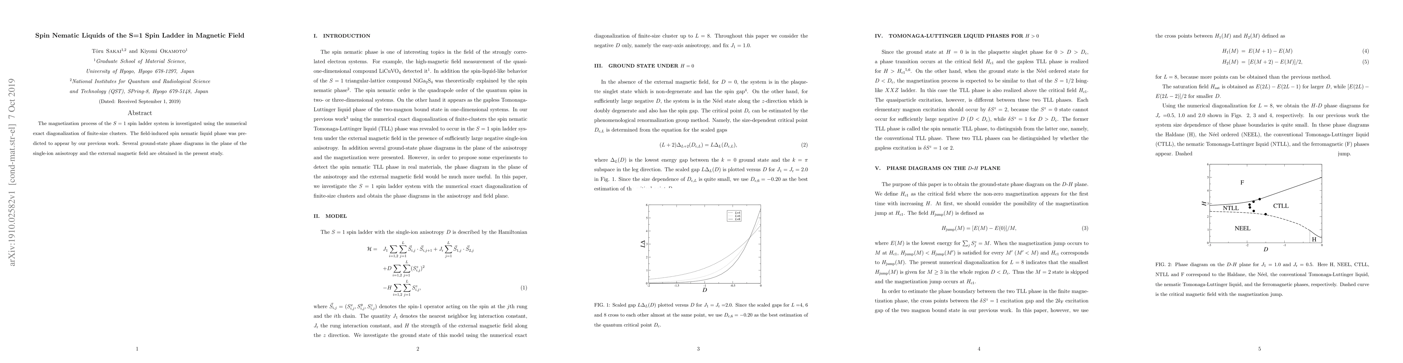 The magnetization process of the $S=1$ spin ladder system is investigated using the numerical exact diagonalization of finite-size clusters. The field-induced spin nematic liquid phase was predicted to appear by our previous work. Several ground-state phase diagrams in the plane of the single-ion anisotropy and the external magnetic field are obtained in the present study.
