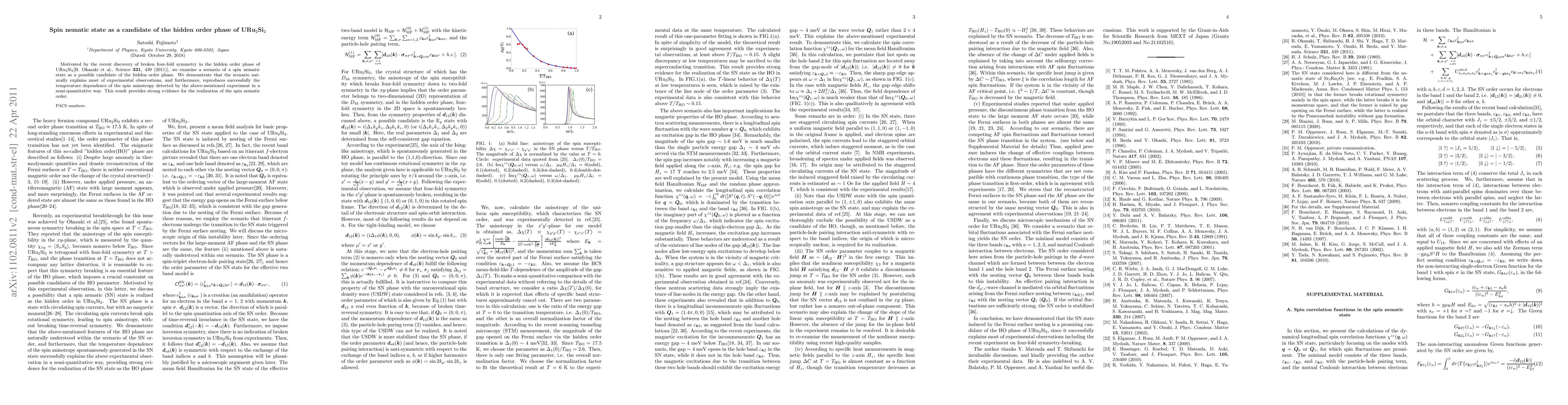 Researchers propose a spin nematic state as a possible candidate for the hidden order phase of URu$_2$Si$_2$, explaining most experimental observations and reproducing temperature-dependent measurements.