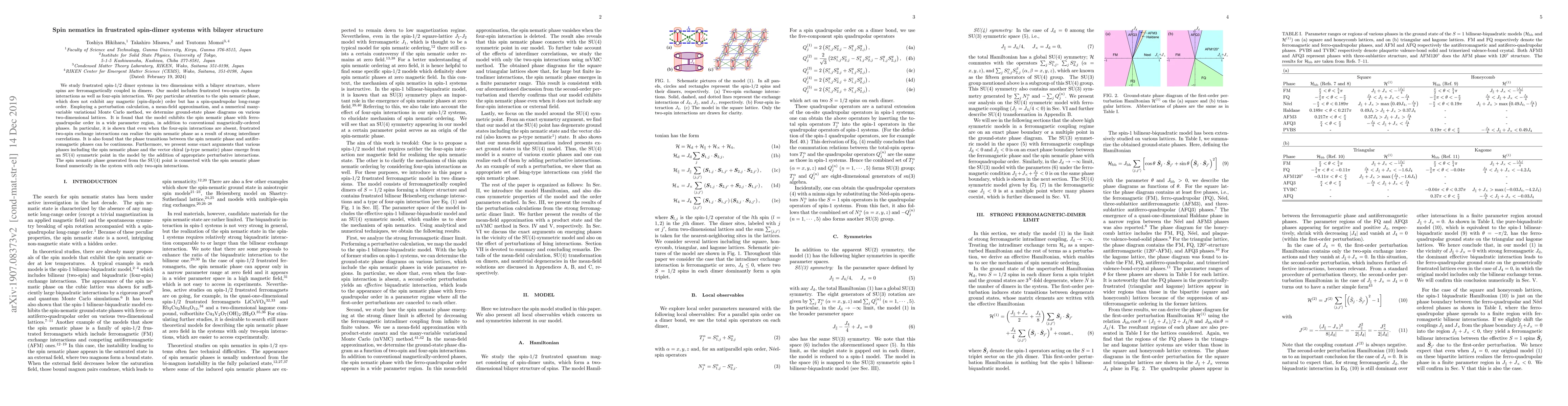 This paper investigates spin-1/2 dimer systems in bilayer structures with ferromagnetic dimer coupling and frustrated two-spin and four-spin interactions. It identifies a spin nematic phase characterized by ferro-quadrupolar order, realized through strong interdimer correlations, and demonstrates continuous phase transitions between this phase and antiferromagnetic phases.
