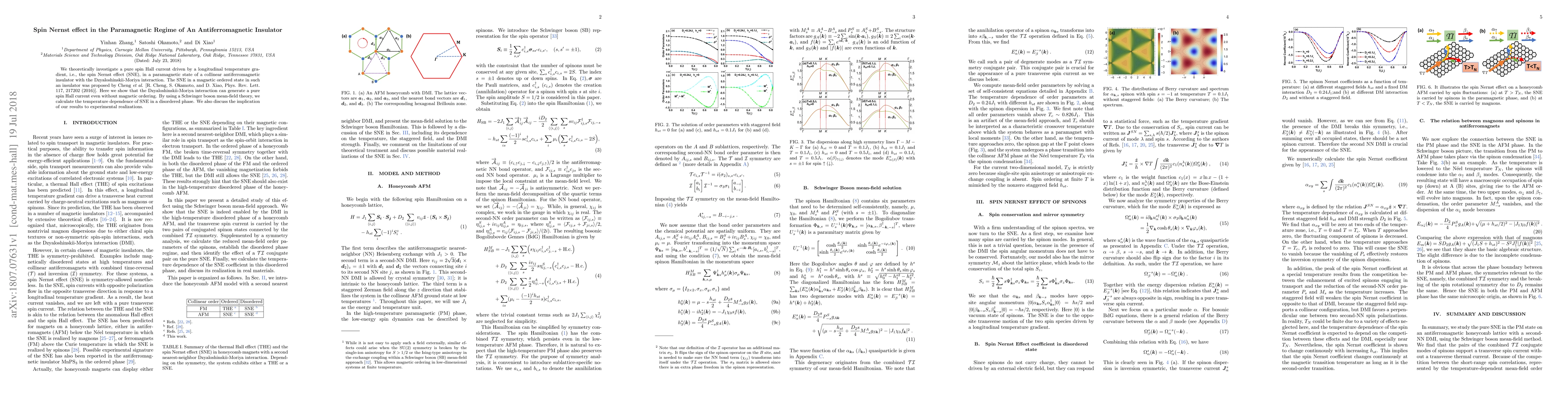This paper theoretically explores the spin Nernst effect (SNE) in a paramagnetic regime of a collinear antiferromagnetic insulator, demonstrating that the Dzyaloshinskii-Moriya interaction can induce a pure spin Hall current without magnetic ordering. The study uses a Schwinger boson mean-field theory to calculate the temperature dependence of SNE in a disordered phase.