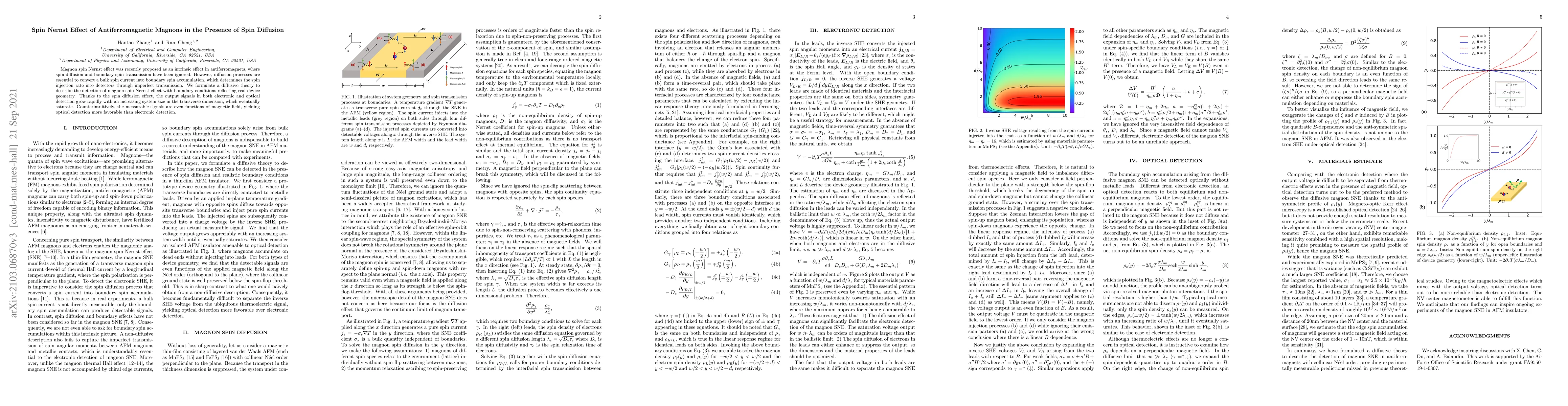 This paper formulates a theory to describe the magnon spin Nernst effect in antiferromagnets, considering spin diffusion and boundary conditions. It finds that spin diffusion enhances detection signals, which grow with system size but eventually saturate, and that optical detection is more favorable due to the effect being an even function of magnetic field.