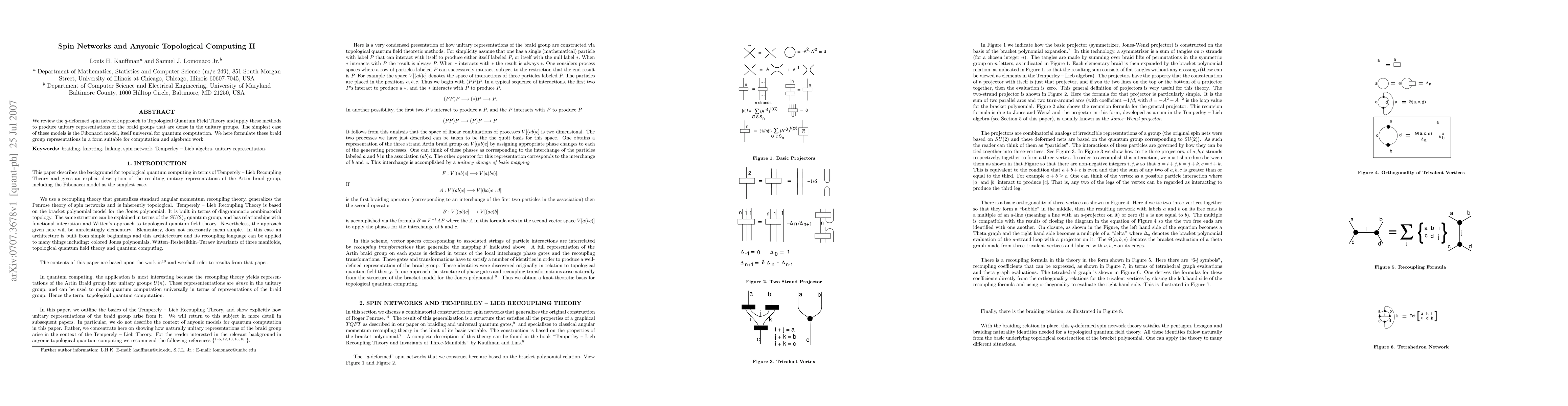 We review the q-deformed spin network approach to topological quantum field theory and apply these methods to produce unitary representations of the braid groups that are dense in the unitary groups. The simplest case of these models is the Fibonacci model, itself universal for quantum computation. We here formulate these braid group representations in a shape suitable for computation and algebraic work.