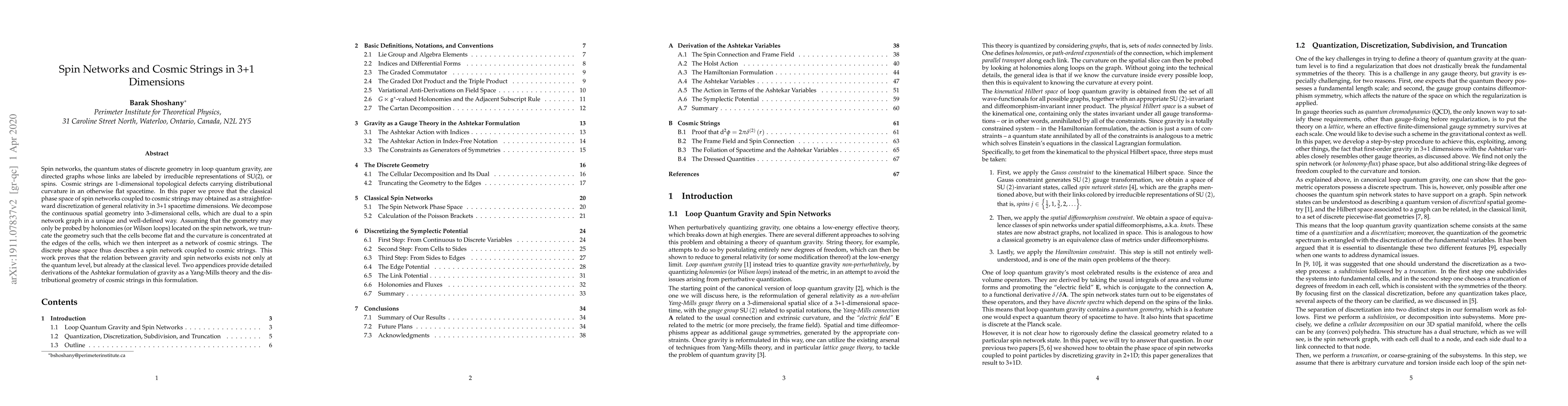 This paper demonstrates that the classical phase space of spin networks, fundamental to loop quantum gravity, coupled with cosmic strings can be derived from a discretized version of general relativity in 3+1 dimensions. The authors show that spatial geometry can be decomposed into flat cells dual to spin networks, with curvature concentrated at their edges, interpreted as cosmic strings.