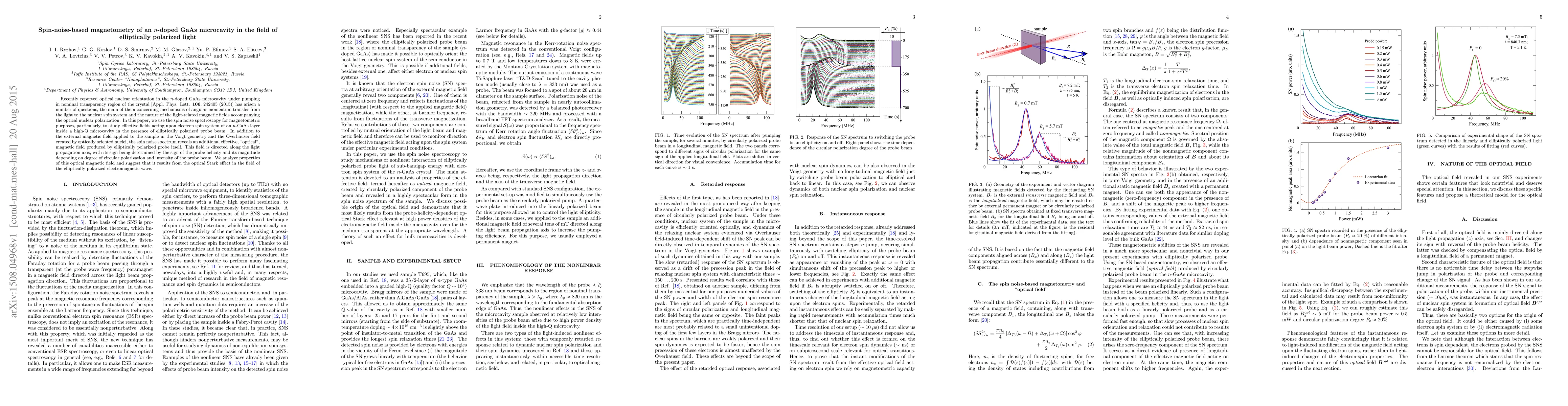 Recently reported optical nuclear orientation in the $n$-doped GaAs microcavity under pumping in nominal transparency region of the crystal [Appl. Phys. Lett. $\mathbf{106}$, 242405 (2015)] has arisen a number of questions, the main of them concerning mechanisms of angular momentum transfer from the light to the nuclear spin system and the nature of the light-related magnetic fields accompanying the optical nuclear polarization. In this paper, we use the spin noise spectroscopy for magnetometric purposes, particularly, to study effective fields acting upon electron spin system of an $n$-GaAs layer inside a high-Q microcavity in the presence of elliptically polarized probe beam. In addition to the external magnetic field applied to the sample in the Voigt geometry and the Overhauser field created by optically oriented nuclei, the spin noise spectrum reveals an additional effective, "optical," magnetic field produced by elliptically polarized probe itself. This field is directed along the light propagation axis, with its sign being determined by the sign of the probe helicity and its magnitude depending on degree of circular polarization and intensity of the probe beam. We analyze properties of this optical magnetic field and suggest that it results from the optical Stark effect in the field of the elliptically polarized electromagnetic wave.