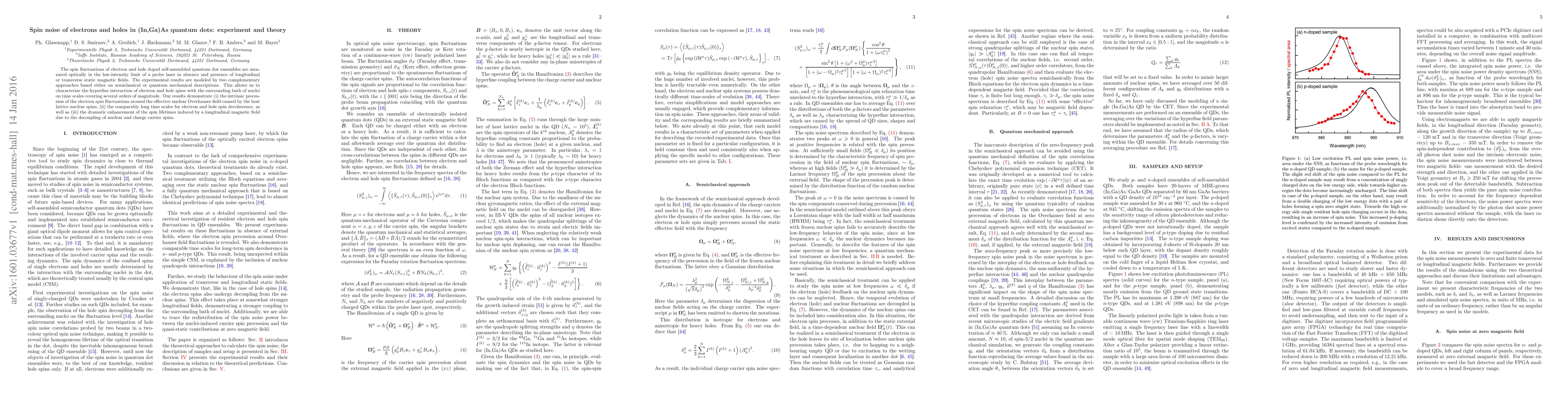 This research measures spin fluctuations of electrons and holes in (In,Ga)As quantum dots, using optical probes in varying magnetic fields. The findings reveal electron spin precession around nuclear Overhauser fields, similar electron and hole decoherence times, and extended spin lifetimes for both under longitudinal magnetic fields, highlighting the interplay between charge carriers and nuclear spins.
