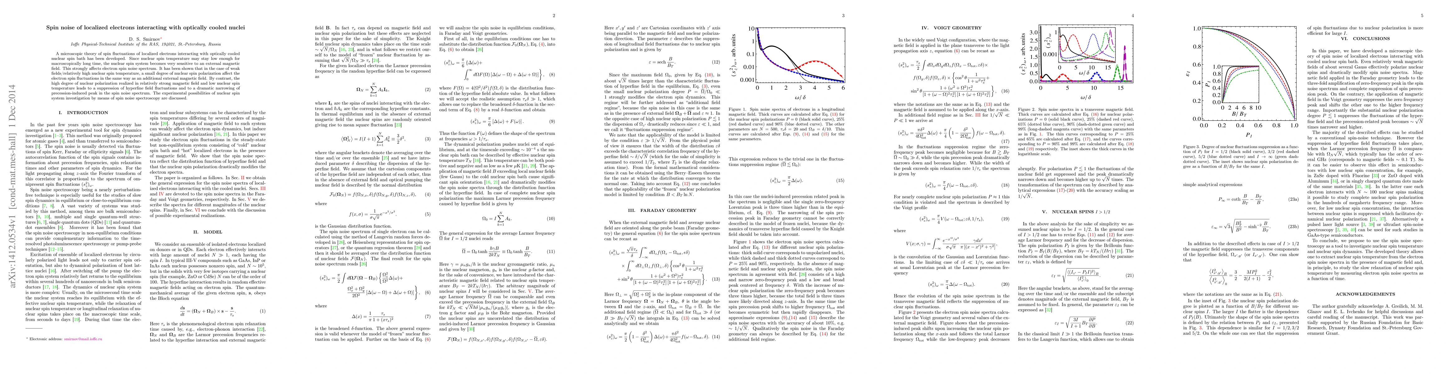 This research develops a theory for the spin fluctuations of localized electrons interacting with optically cooled nuclei, demonstrating how nuclear spin polarization influences electron spin noise under different magnetic field conditions. It finds that high nuclear polarization suppresses hyperfine field fluctuations and narrows precession-induced peaks in the electron spin noise spectrum.