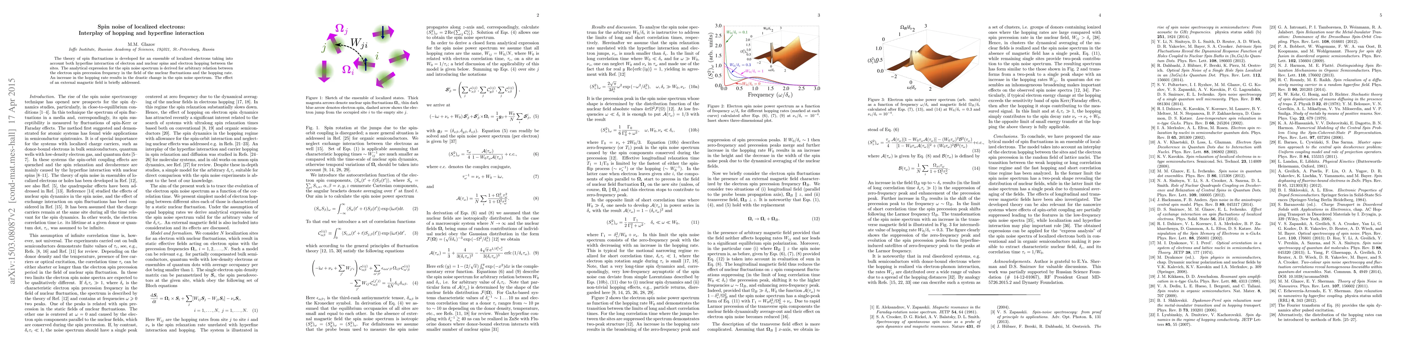 The research develops a theoretical framework for spin fluctuations in localized electrons, considering both hyperfine interactions and electron hopping, and derives an analytical expression for the spin noise spectrum, showing significant changes with varying hopping rates and briefly addressing external magnetic field effects.