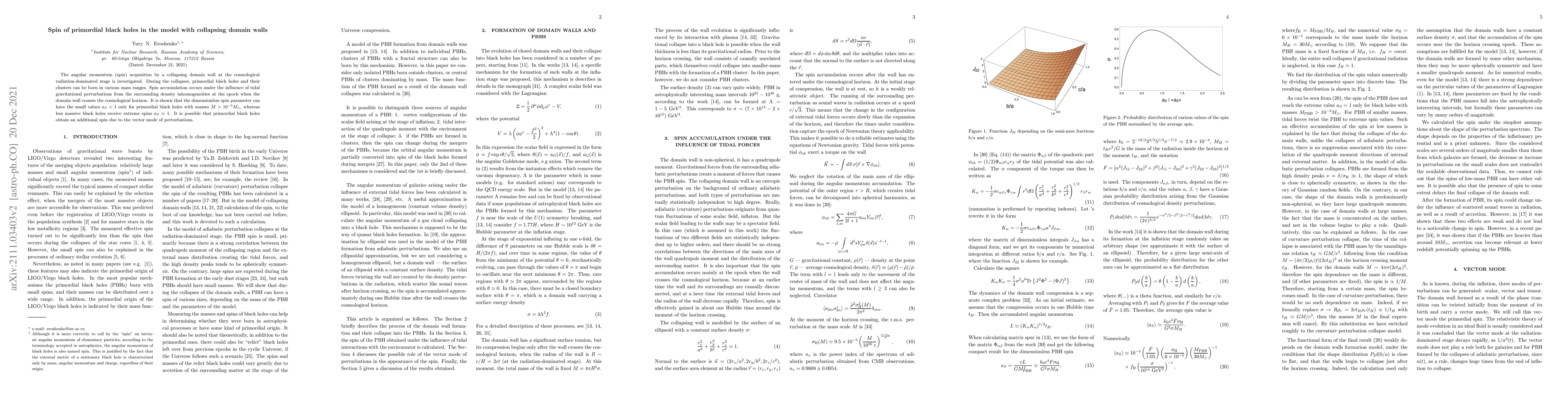 This paper investigates how primordial black holes acquire spin from collapsing domain walls during the radiation-dominated cosmological era, revealing that less massive black holes tend to have extreme spins, while more massive ones have smaller spins. The study also suggests the possibility of additional spin from vector mode perturbations.