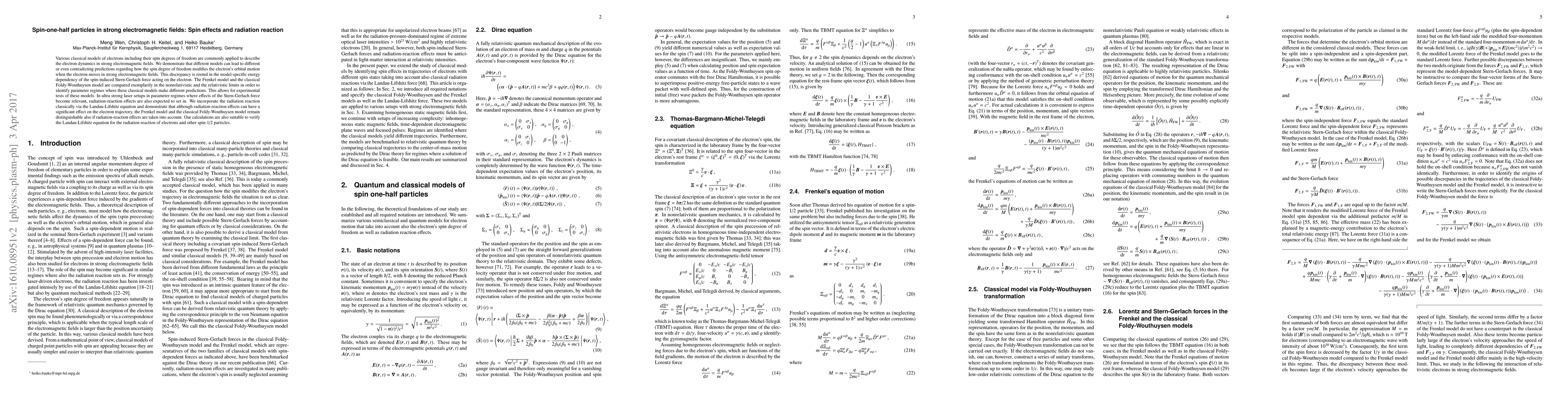 This paper compares classical models of electrons, specifically the Frenkel and Foldy-Wouthuysen models, to determine how spin affects electron dynamics in strong electromagnetic fields. It finds that different models predict varying effects of the spin-induced Stern-Gerlach force, and these discrepancies persist even when incorporating radiation-reaction effects.