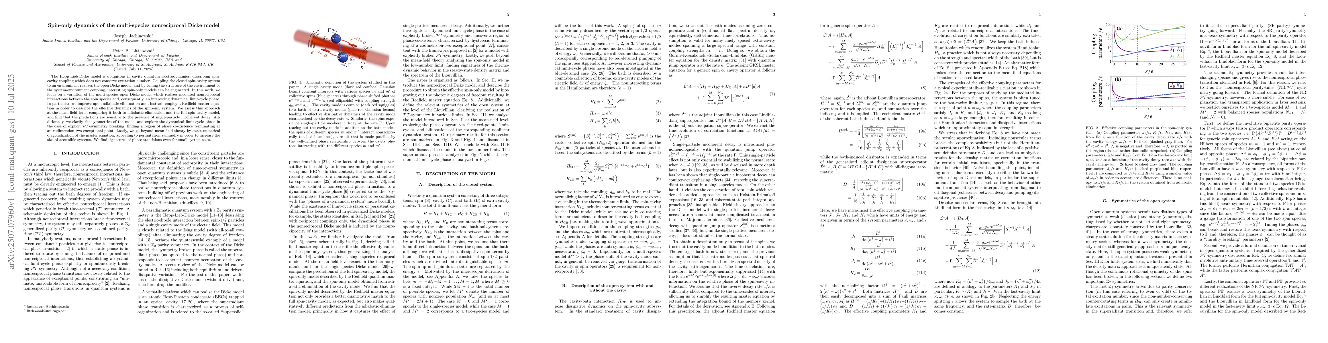 This work highlights the significance of Dicke coupling in understanding spin dynamics, particularly in systems with multiple species.