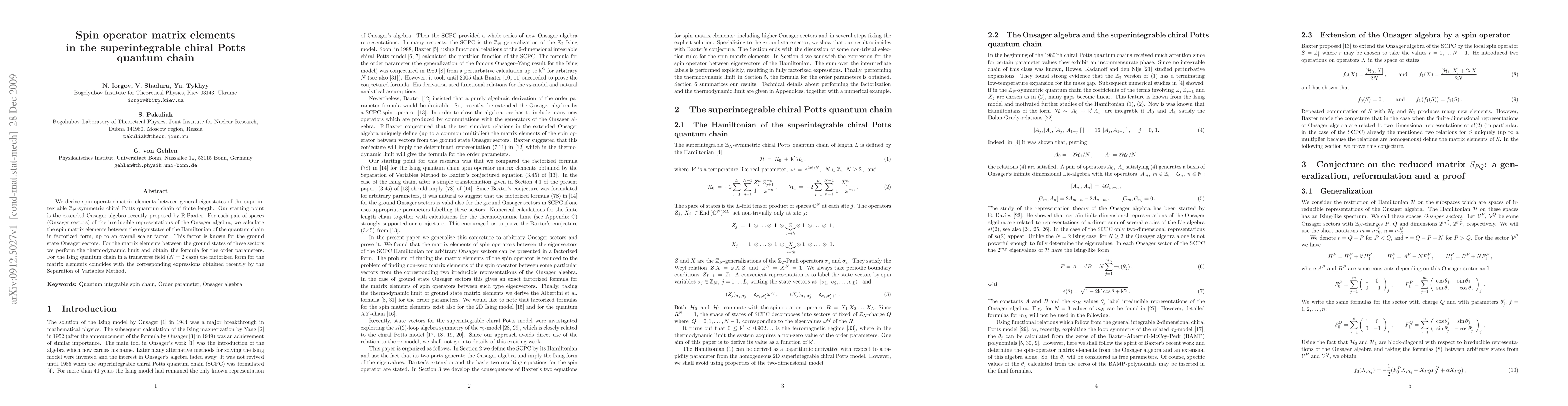 This paper derives spin operator matrix elements for the superintegrable chiral Potts quantum chain using the extended Onsager algebra, providing factorized forms for these elements and determining the order parameters in the thermodynamic limit, with results matching those obtained by the Separation of Variables Method for the Ising case.