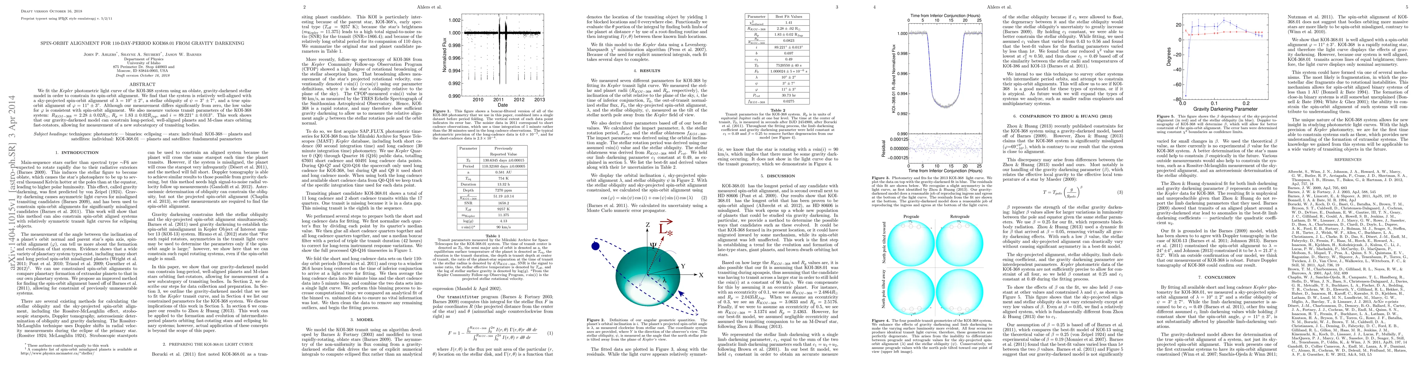 We fit the \emph{Kepler} photometric light curve of the KOI-368 system using an oblate, gravity-darkened stellar model in order to constrain its spin-orbit alignment. We find that the system is relatively well-aligned with a sky-projected spin-orbit alignment of $\lambda=10^{\circ}\pm2^{\circ}$, a stellar obliquity of $\psi=3^{\circ}\pm7^{\circ}$, and a true spin-orbit alignment of $\varphi=11^{\circ}\pm3^{\circ}$. Although our measurement differs significantly from zero, the low value for $\varphi$ is consistent with spin-orbit alignment. We also measure various transit parameters of the KOI-368 system: $R_{\star}=2.28\pm0.02 R_{\odot}$, $R_{p}=1.83\pm0.02R_{jup}$, and $i=89.221^{\circ}\pm0.013^{\circ}$. This work shows that our gravity-darkened model can constrain long-period, well-aligned planets and M-class stars orbiting fast-rotators, allowing for measurement of a new subcategory of transiting bodies.