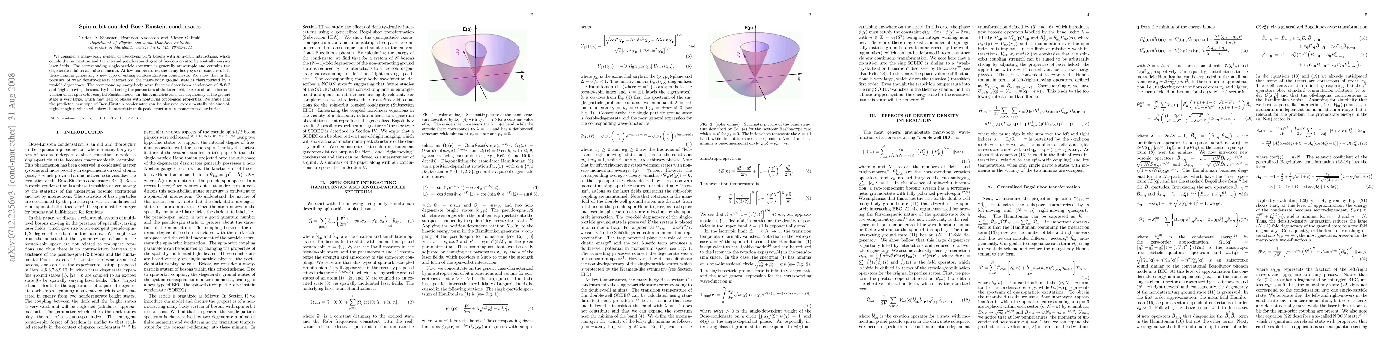 This paper investigates spin-orbit coupled Bose-Einstein condensates of pseudo-spin-1/2 bosons, revealing a new type of entangled condensate formed by left- and right-moving bosons. The study predicts large ground state degeneracy and potential topological phases, observable via time-of-flight imaging.
