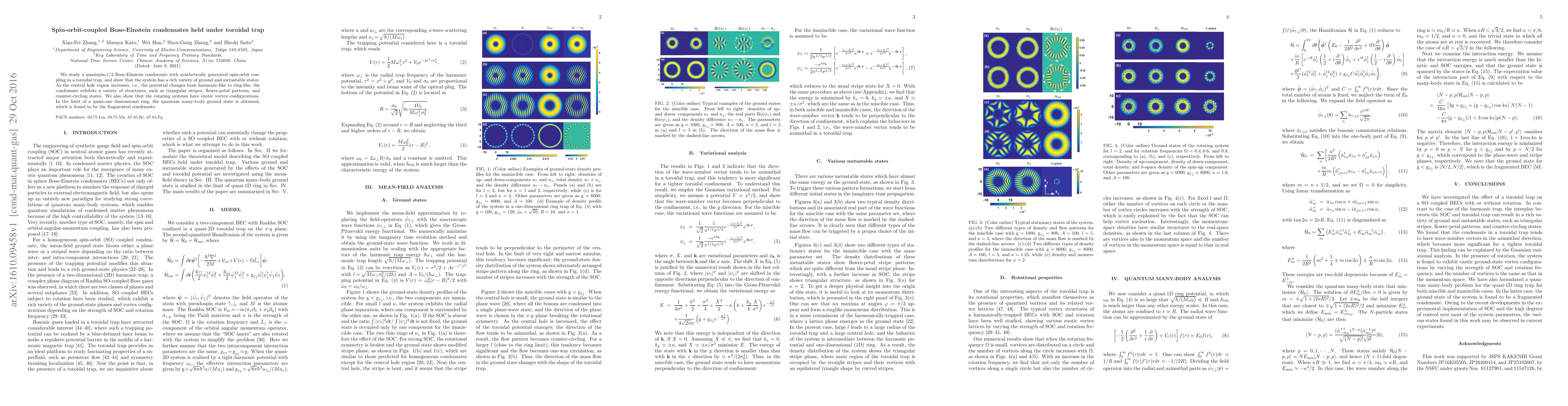 This paper investigates spin-orbit-coupled Bose-Einstein condensates in a toroidal trap, revealing diverse ground and metastable states, including triangular stripes and flower-petal patterns, as well as exotic vortex configurations in rotating systems. The study concludes with a fragmented condensate in the quasi-one-dimensional ring limit.