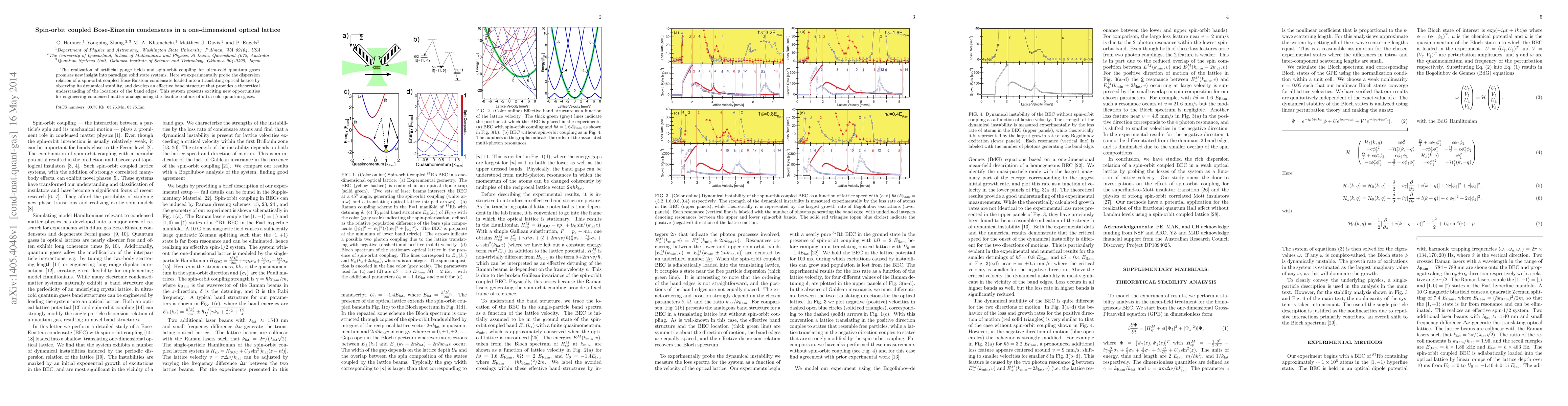 This paper investigates spin-orbit coupled Bose-Einstein condensates in a one-dimensional optical lattice, revealing insights into artificial gauge fields and condensed-matter analogs. The study observes the dynamical stability of the system and develops an effective band structure to understand the band edges.