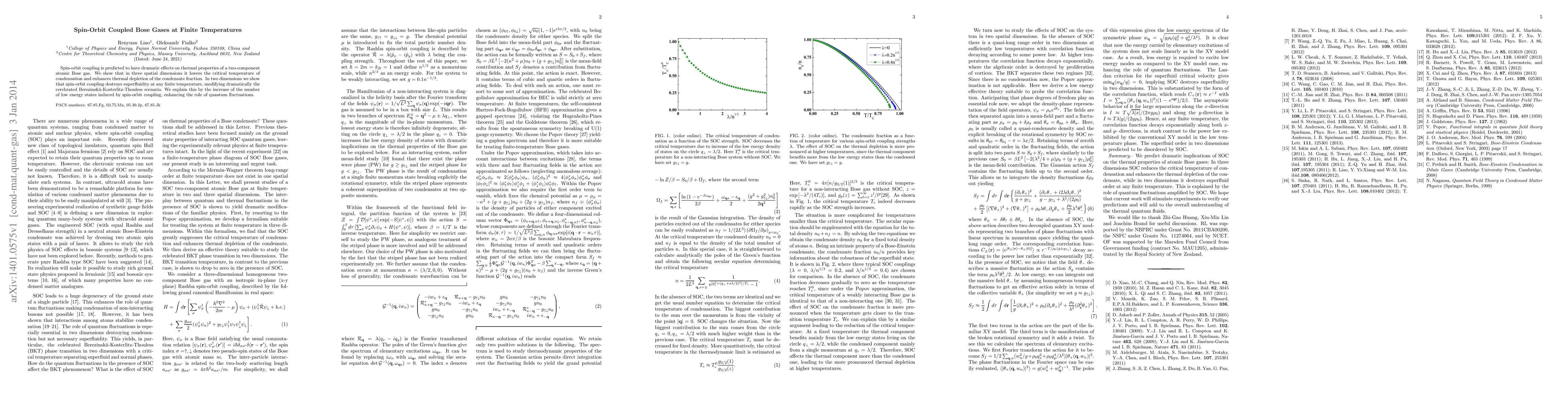 This paper investigates the impact of spin-orbit coupling on Bose gases at finite temperatures, revealing that it lowers the critical condensation temperature and increases thermal depletion in three dimensions. In two dimensions, spin-orbit coupling destroys superfluidity, fundamentally altering the Berezinskii-Kosterlitz-Thouless phase transition due to increased quantum fluctuations.