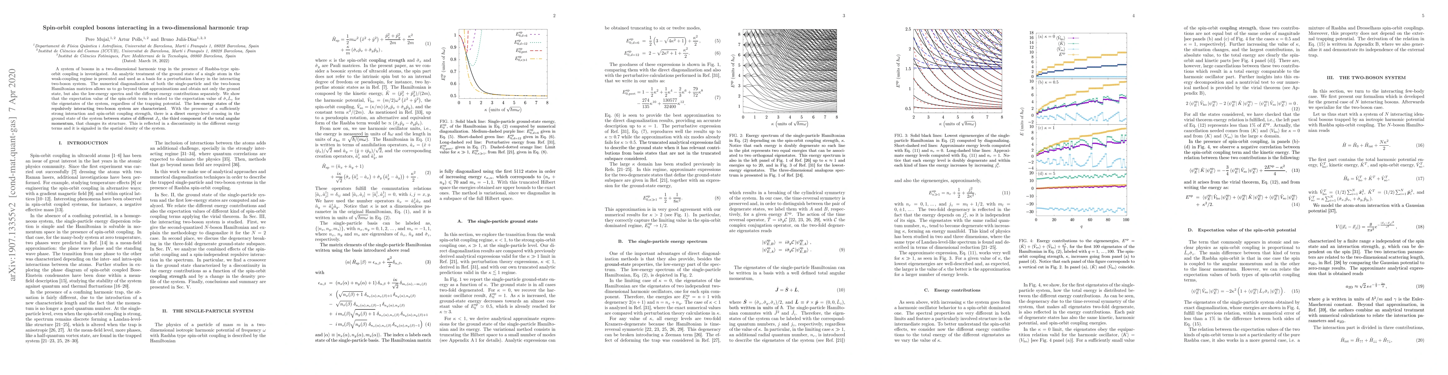 Researchers investigated the interaction of spin-orbit coupled bosons in a 2D harmonic trap, finding a direct energy-level crossing between states of different total angular momentum with strong interaction and spin-orbit coupling.